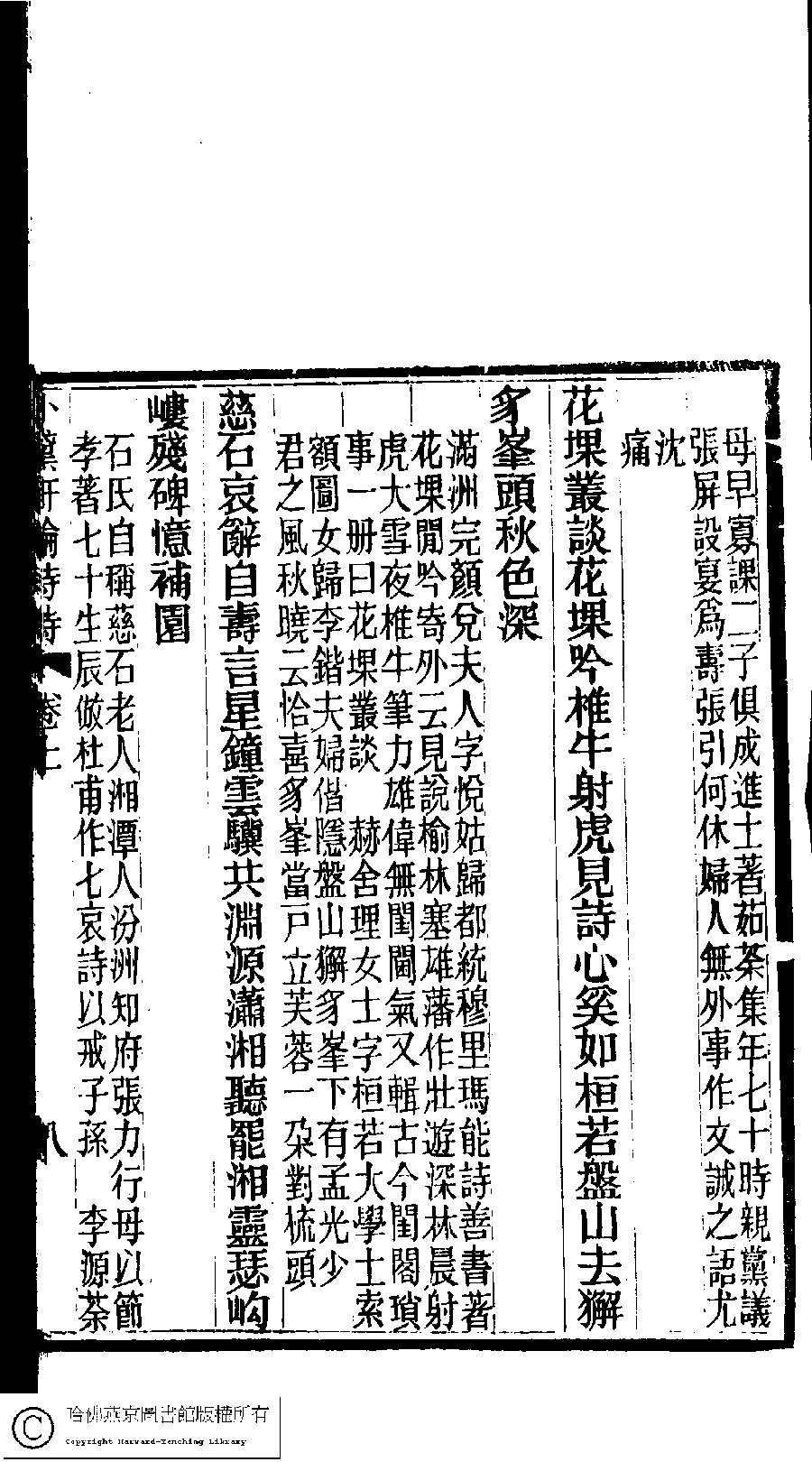 | (PRINT FRIENDLY VERSION) 陳孝女遺集﹕二卷﹔小黛軒論詩詩﹕二卷(清陳芸撰)。民國三年(1914)刻本 ![]() 頁碼 : 上.8a | 点 击 放 大 | 返回 |