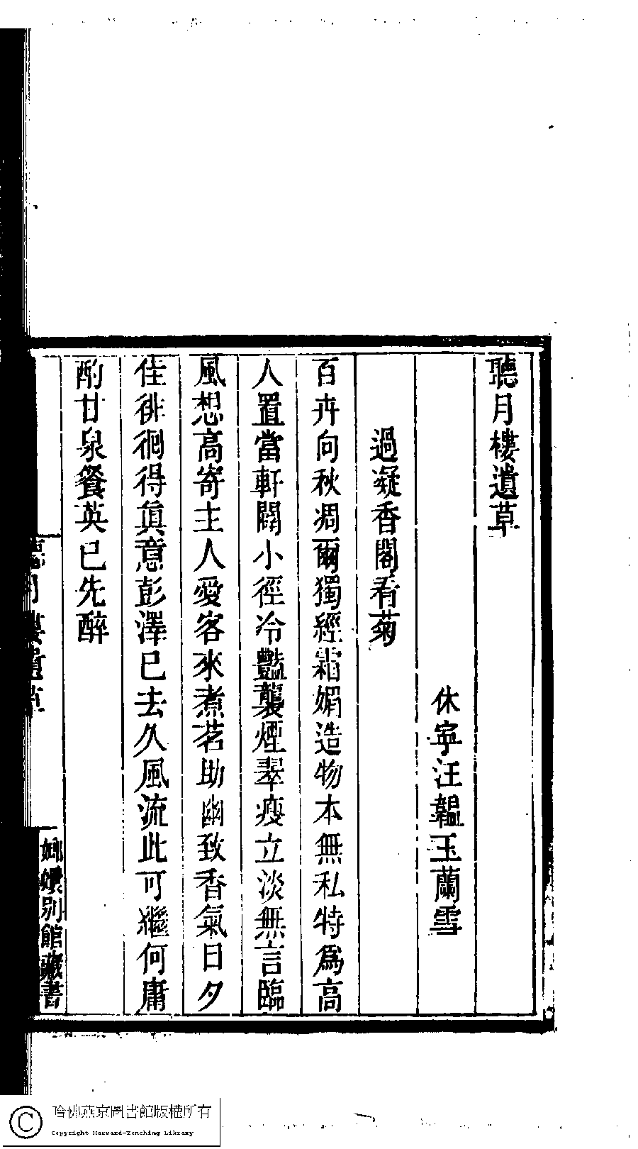 | 原書: 國朝閨閣詩鈔﹕一百種一百卷(清蔡殿齊輯): 聽月樓遺草﹕一卷 |
