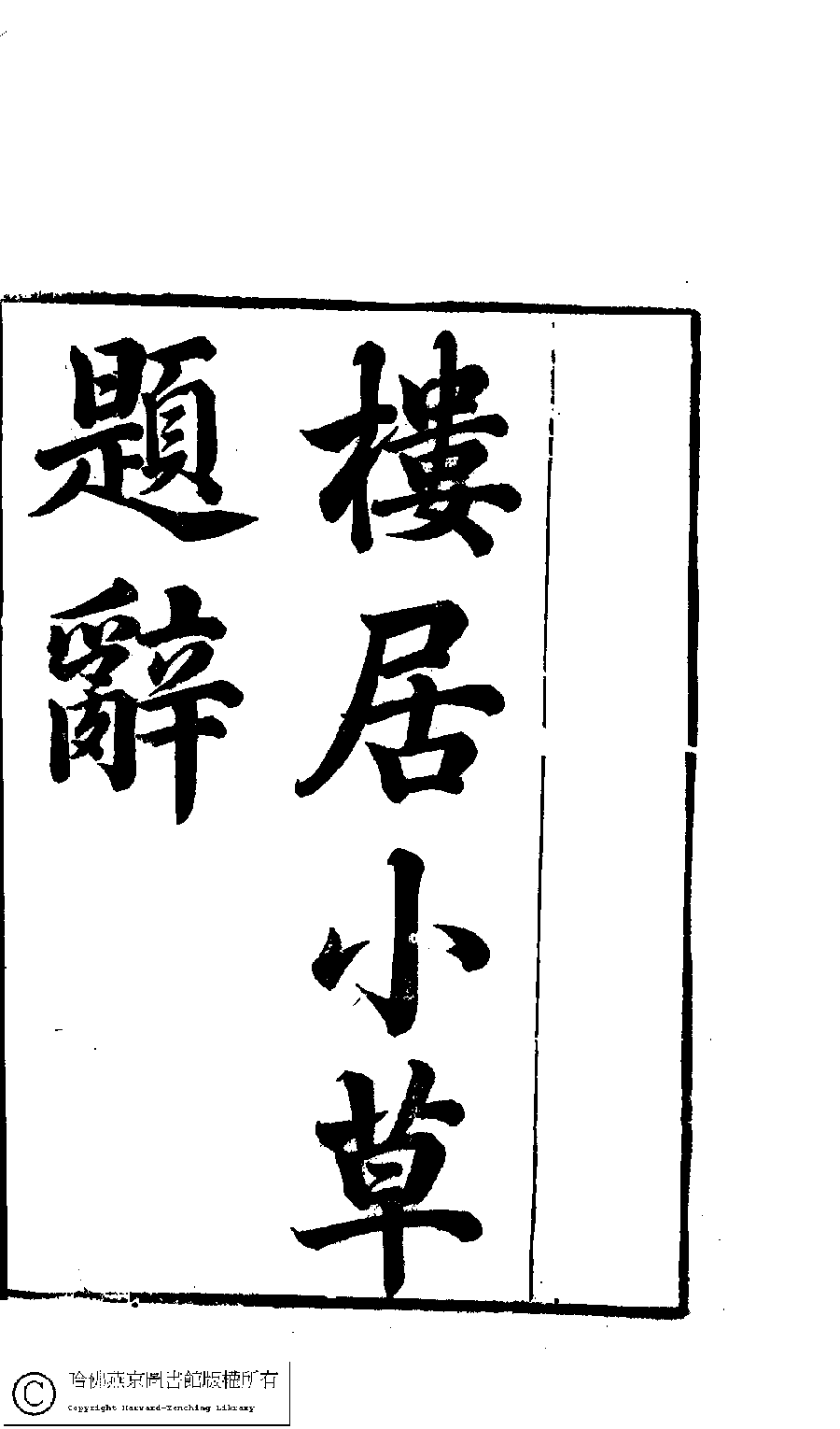 樓居小草﹕一卷(清袁杼撰)。清嘉慶間(1796-1820)刻本。