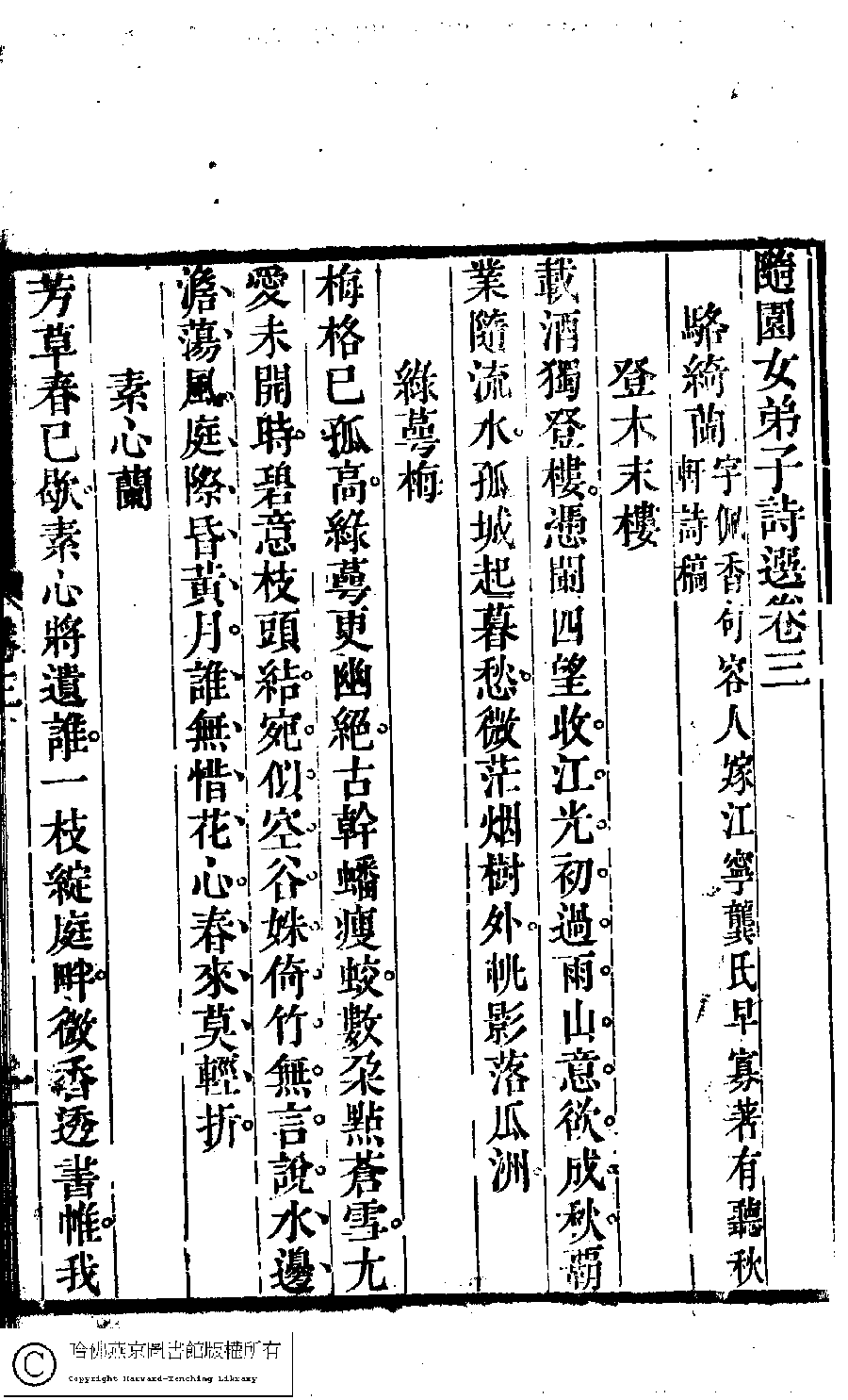 隨園女弟子詩選﹕六卷(清袁枚輯)。淸嘉慶道光年間(1796-1850)坊刻巾箱本
