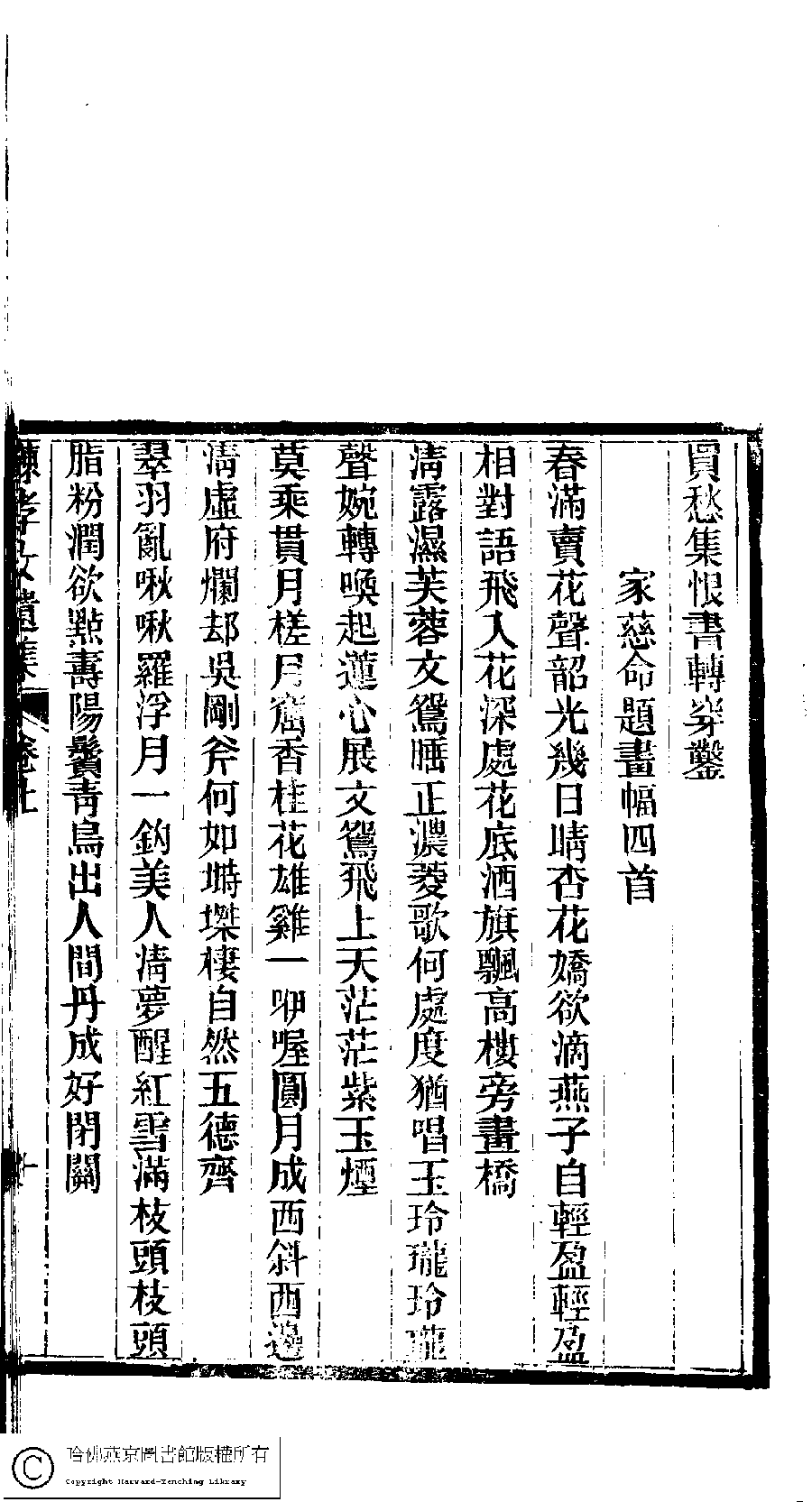 | 原書: 陳孝女遺集﹕二卷﹔小黛軒論詩詩﹕二卷(清陳芸撰) |