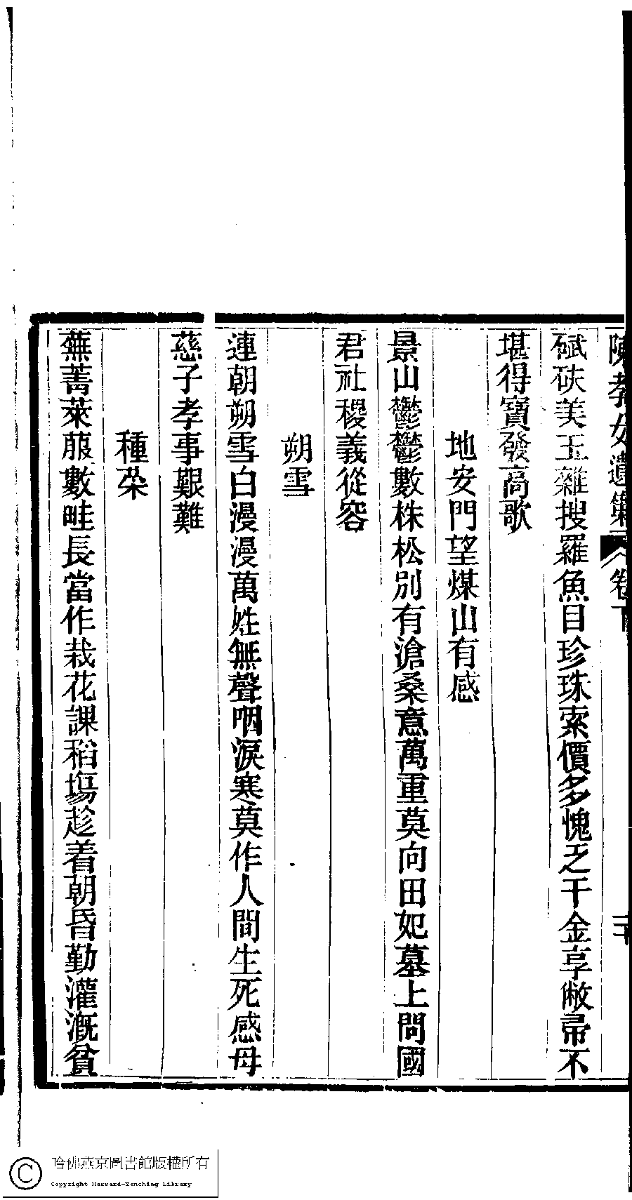 | 原書: 陳孝女遺集﹕二卷﹔小黛軒論詩詩﹕二卷(清陳芸撰) |