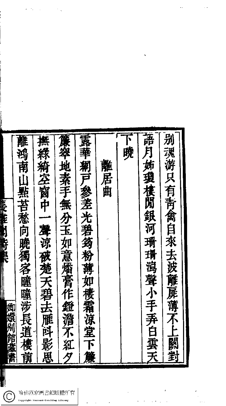 | (PRINT FRIENDLY VERSION) 國朝閨閣詩鈔﹕一百種一百卷(清蔡殿齊輯) : 長離閣詩集﹕一卷。清道光二十四年(1844)刻本。 ![]() 頁碼 : 5.29b | 点 击 放 大 | 國朝閨閣詩鈔﹕一百種一百卷(清蔡殿齊輯) : 長離閣詩集﹕一卷。清道光二十四年(1844)刻本。![]() 頁碼 : 5.29a | 点 击 放 大 | 返回 |