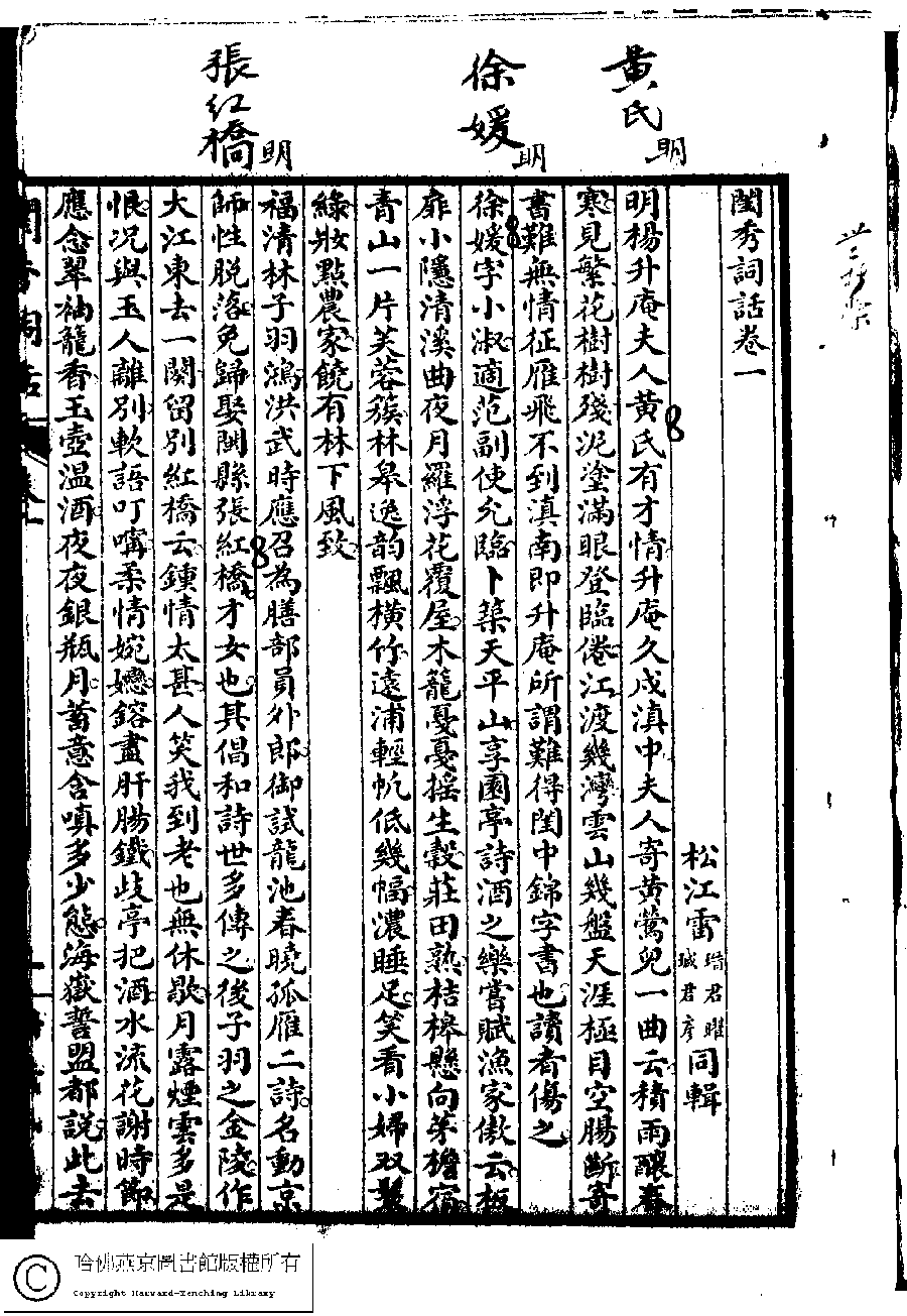 閨秀詞話﹕四卷(雷瑨、雷瑊輯)