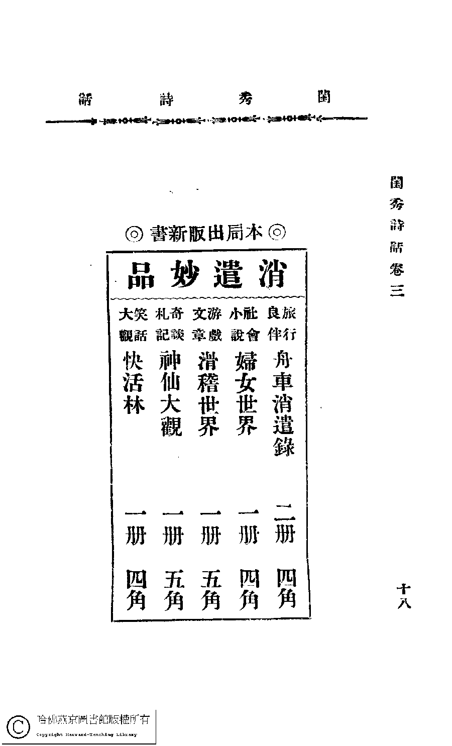 閨秀詩話﹕四卷(苕溪生輯)。民國丙寅(1926)鉛印本。