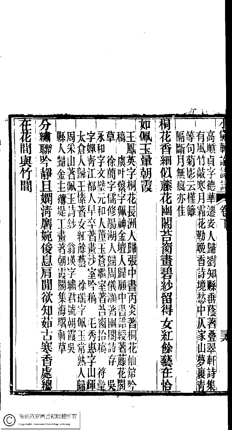 | (PRINT FRIENDLY VERSION) 陳孝女遺集﹕二卷﹔小黛軒論詩詩﹕二卷(清陳芸撰)。民國三年(1914)刻本 ![]() 頁碼 : 下.36b | 点 击 放 大 | 返回 |