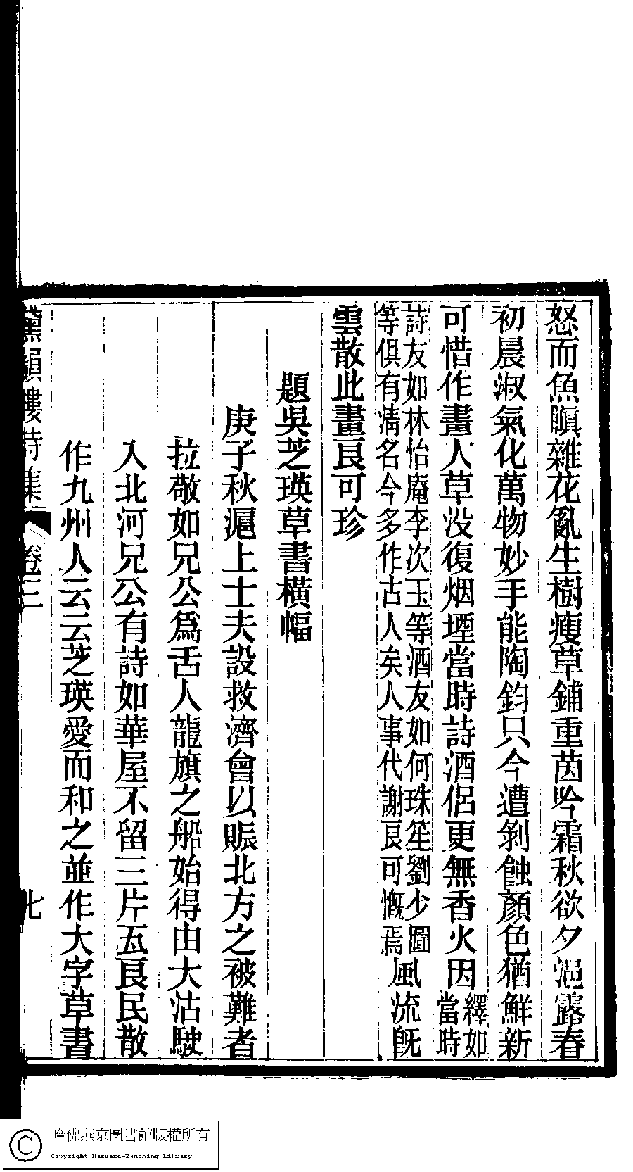 | (PRINT FRIENDLY VERSION) 黛韻樓遺集(清薛紹徽撰)。甲寅閏月(1914)刻本。 ![]() 頁碼 : 3.7a | 点 击 放 大 | 黛韻樓遺集(清薛紹徽撰)。甲寅閏月(1914)刻本。![]() 頁碼 : 3.6b | 点 击 放 大 | 返回 |