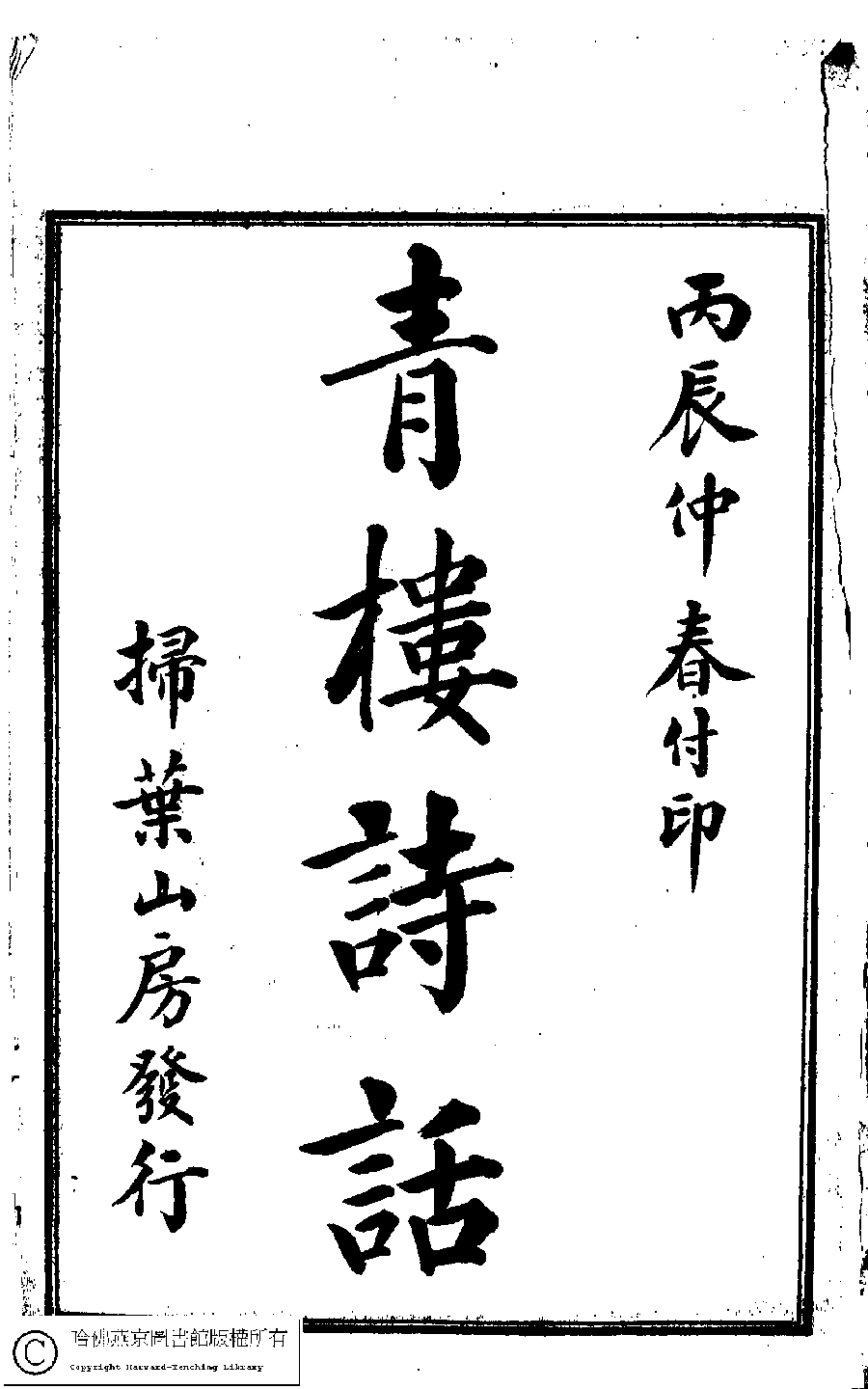 青樓詩話﹕二卷(雷瑨輯)。民國五年(1916)掃葉山房石印本。