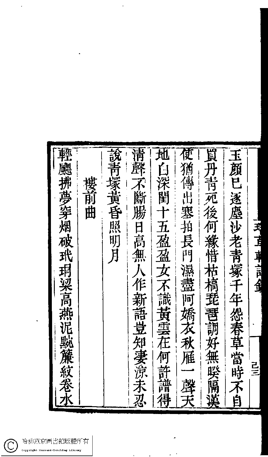 | 原書: 國朝閨閣詩鈔﹕一百種一百卷(清蔡殿齊輯): 瑤草軒詩鈔﹕一卷 |