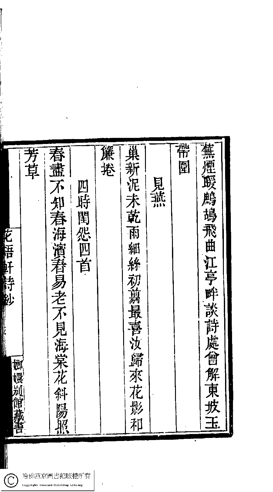 | 原書: 國朝閨閣詩鈔﹕一百種一百卷(清蔡殿齊輯): 花語軒詩鈔﹕一卷 |