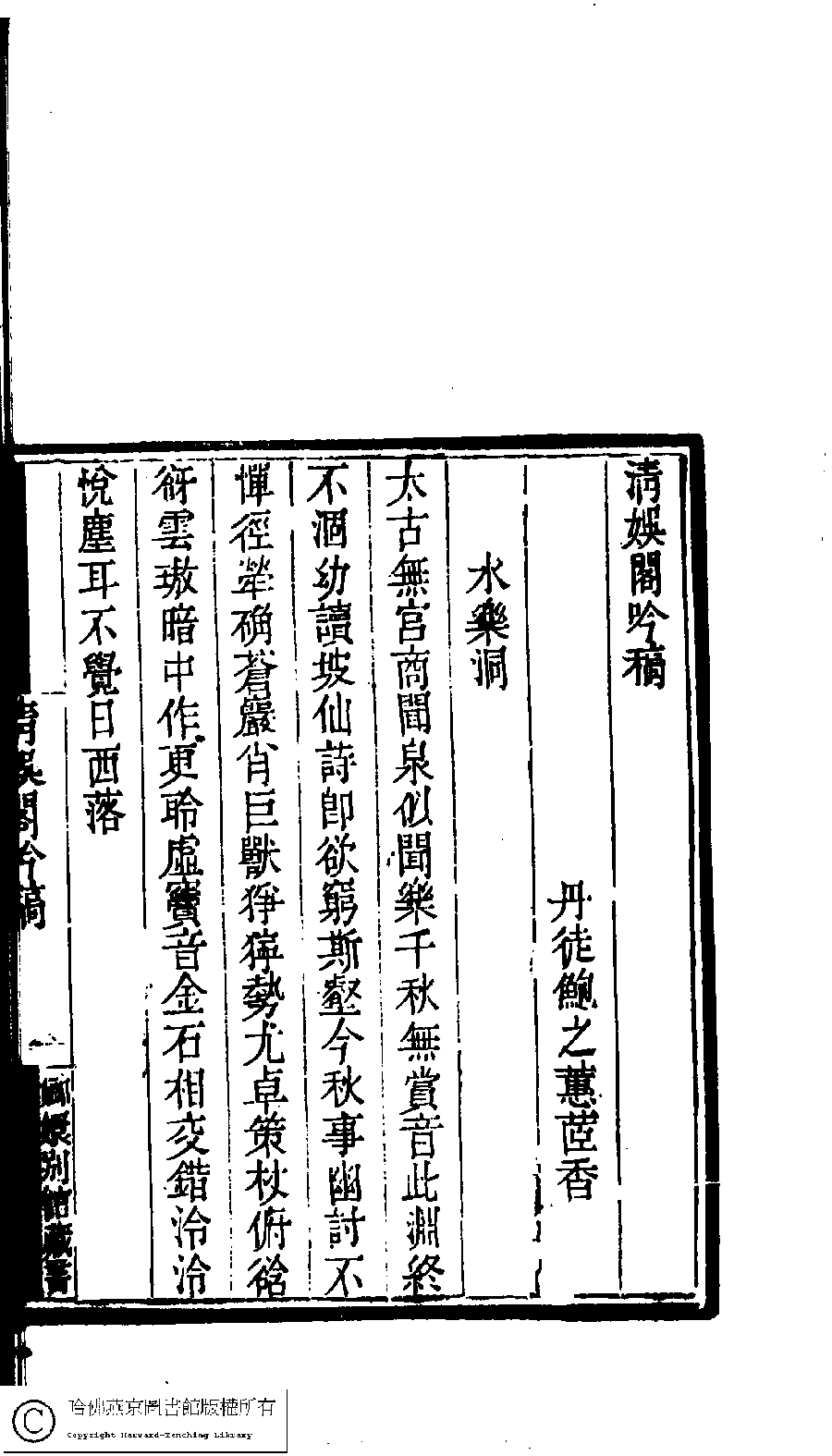 | 原書: 國朝閨閣詩鈔﹕一百種一百卷(清蔡殿齊輯): 清娛閣吟稿﹕一卷 |