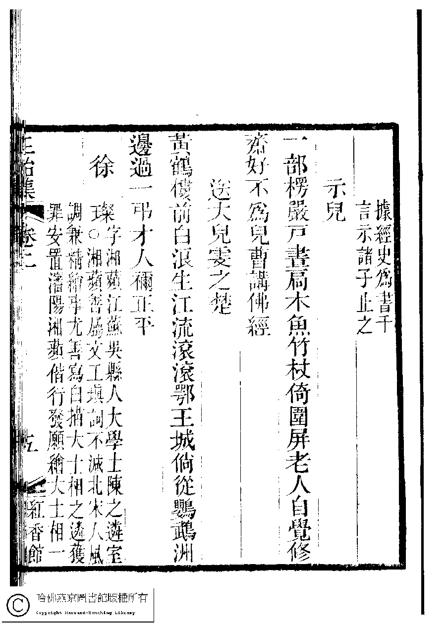 | (PRINT FRIENDLY VERSION) 國朝閨秀正始集﹕二十卷﹐附錄﹕一卷﹐補遺﹕一卷﹐又附題詞﹕一卷(清惲珠輯)。清道光十一年(1831)紅香館刻本。 ![]() 頁碼 : 2.5a | 点 击 放 大 | 返回 |