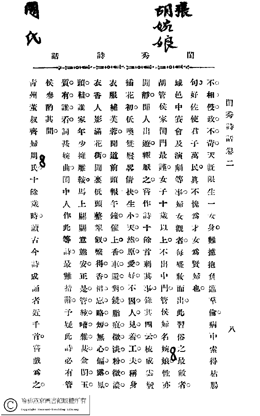 | (PRINT FRIENDLY VERSION) 閨秀詩話﹕四卷(苕溪生輯)。民國丙寅(1926)鉛印本。 ![]() 頁碼 : 2.9 | 点 击 放 大 | 閨秀詩話﹕四卷(苕溪生輯)。民國丙寅(1926)鉛印本。![]() 頁碼 : 2.8 | 点 击 放 大 | 返回 |