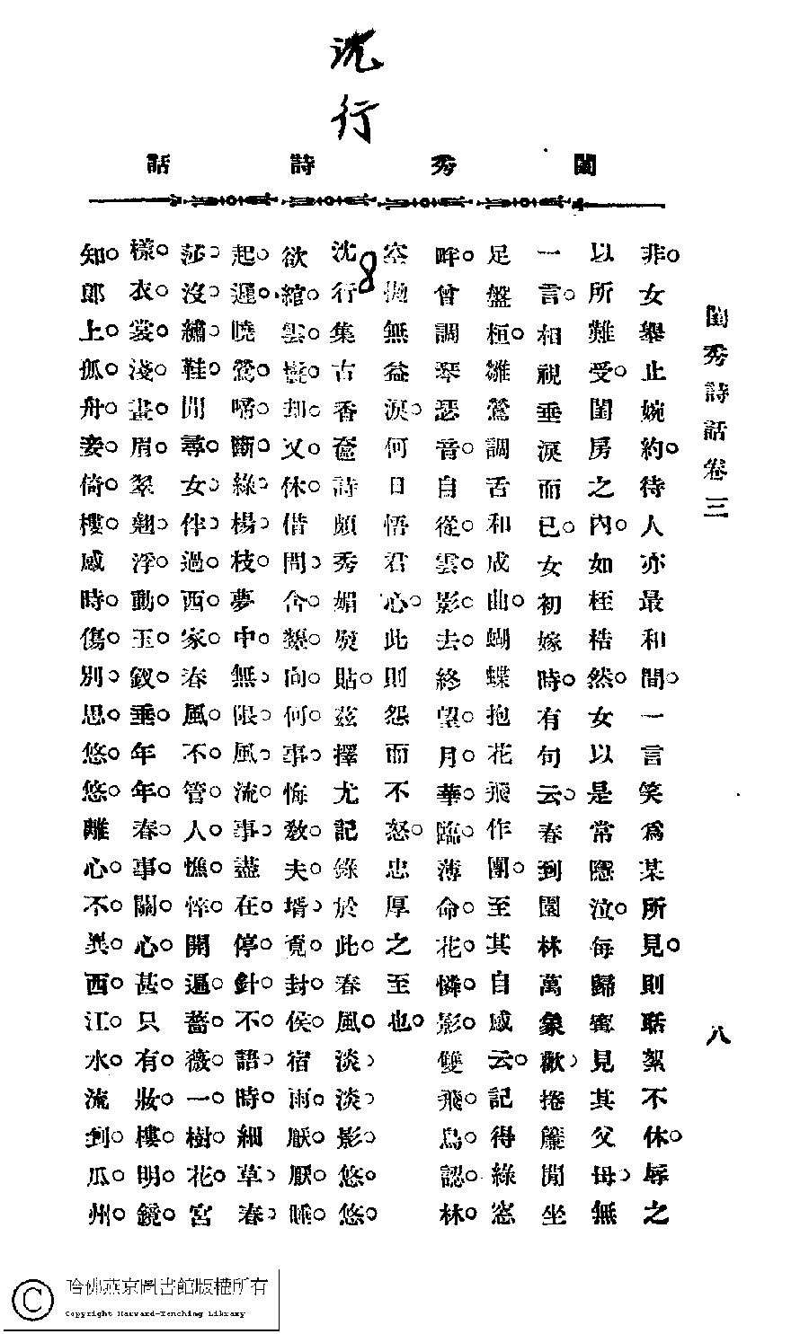 | (PRINT FRIENDLY VERSION) 閨秀詩話﹕四卷(苕溪生輯)。民國丙寅(1926)鉛印本。 ![]() 頁碼 : 3.8 | 点 击 放 大 | 閨秀詩話﹕四卷(苕溪生輯)。民國丙寅(1926)鉛印本。![]() 頁碼 : 3.7 | 点 击 放 大 | 返回 |