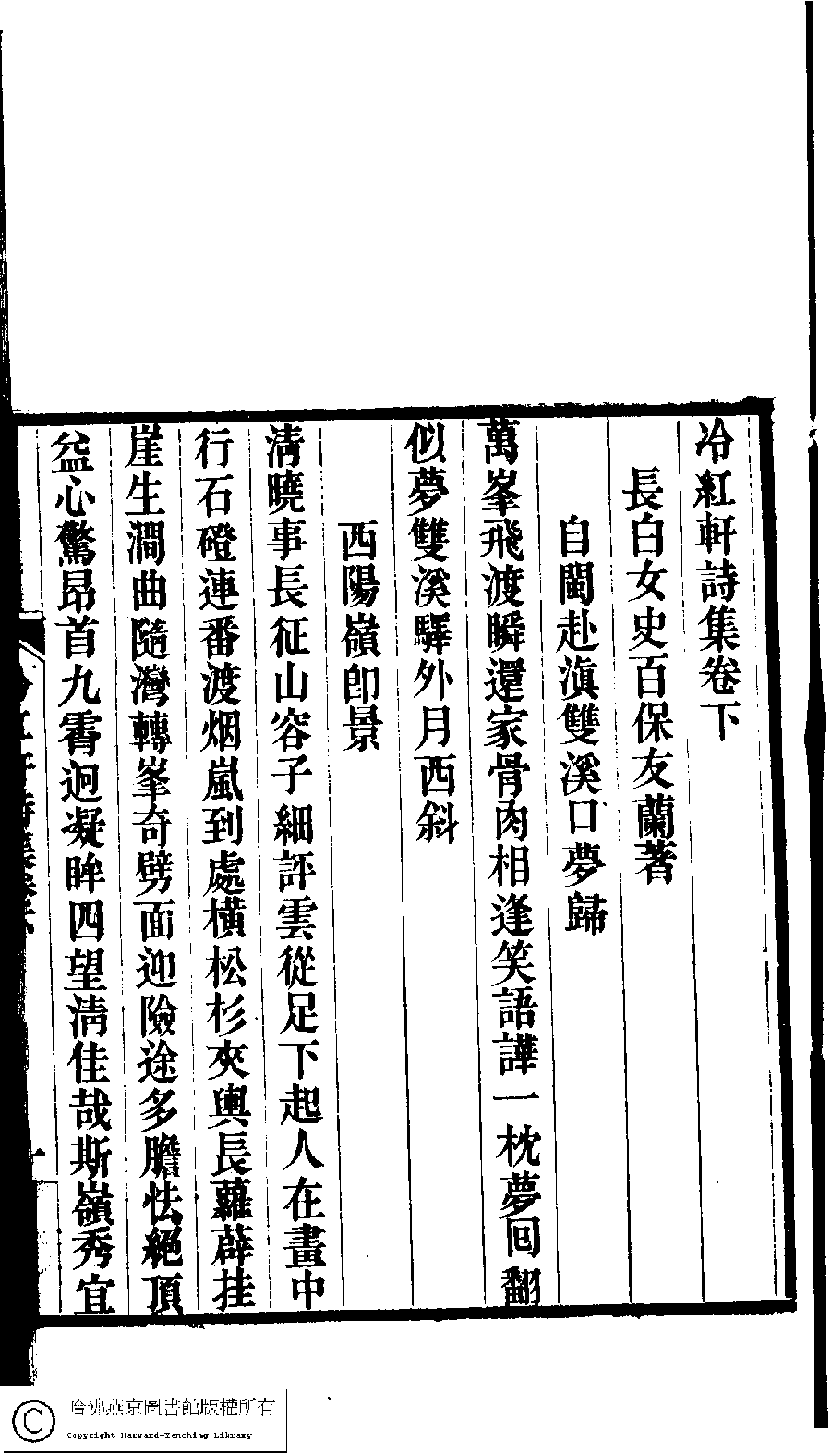 冷紅軒詩集﹕二卷﹐附詞(清百保友蘭撰)