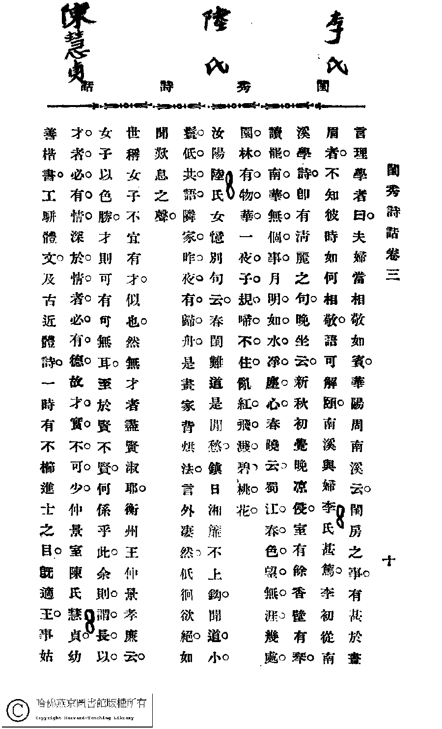 閨秀詩話﹕四卷(苕溪生輯)。民國丙寅(1926)鉛印本。