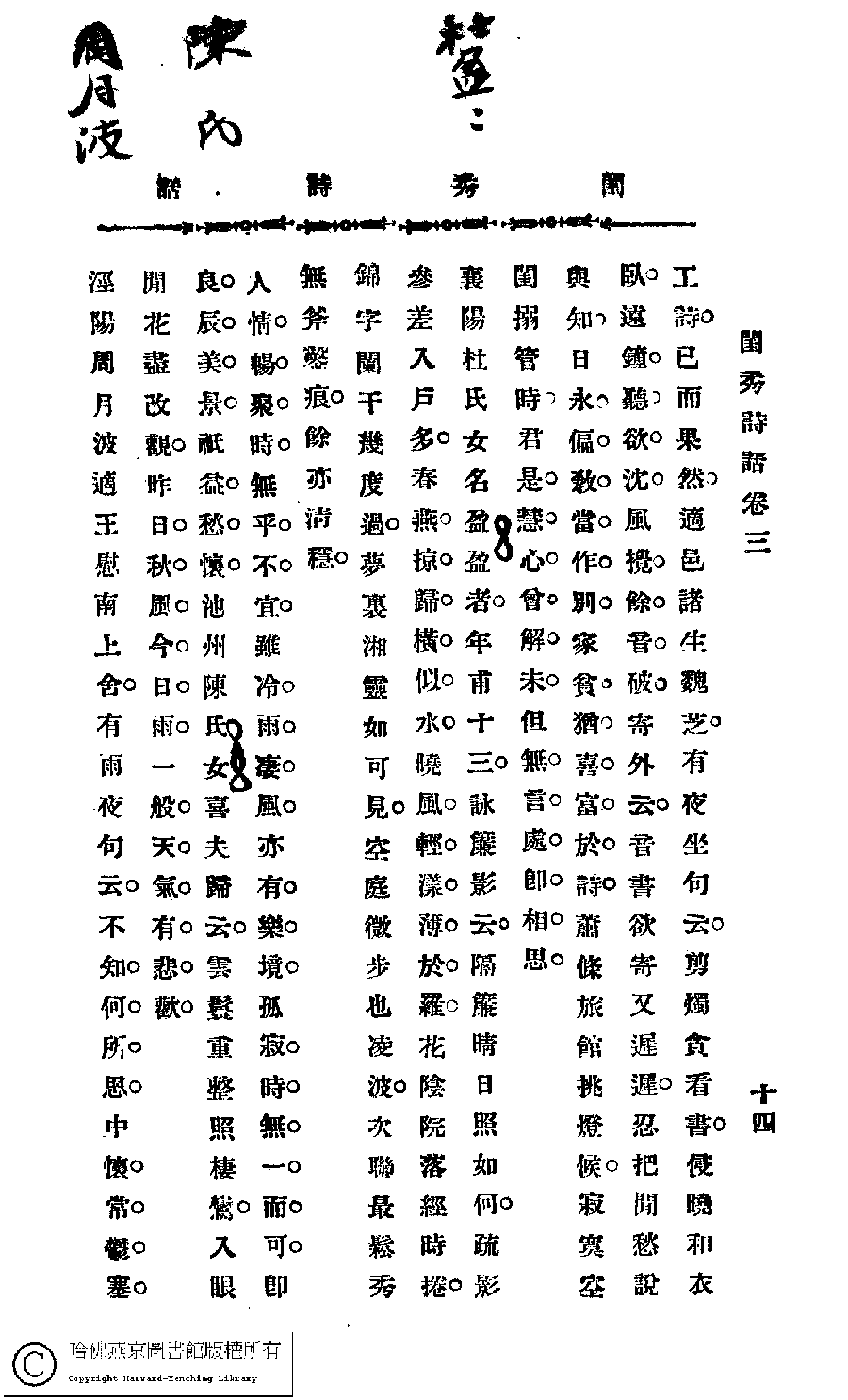 閨秀詩話﹕四卷(苕溪生輯)