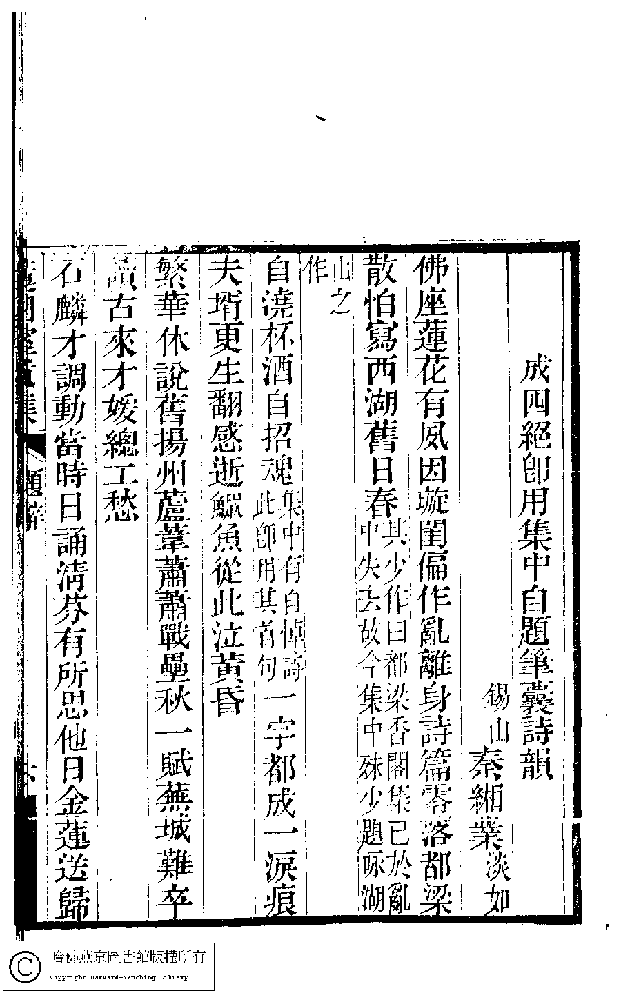 | 原書: 蓮因室詩集﹕二卷﹐詞集﹕一卷(清鄭蘭孫撰) |