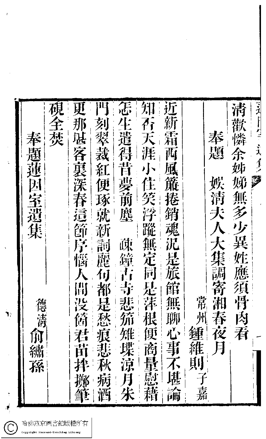 | 原書: 蓮因室詩集﹕二卷﹐詞集﹕一卷(清鄭蘭孫撰) |
