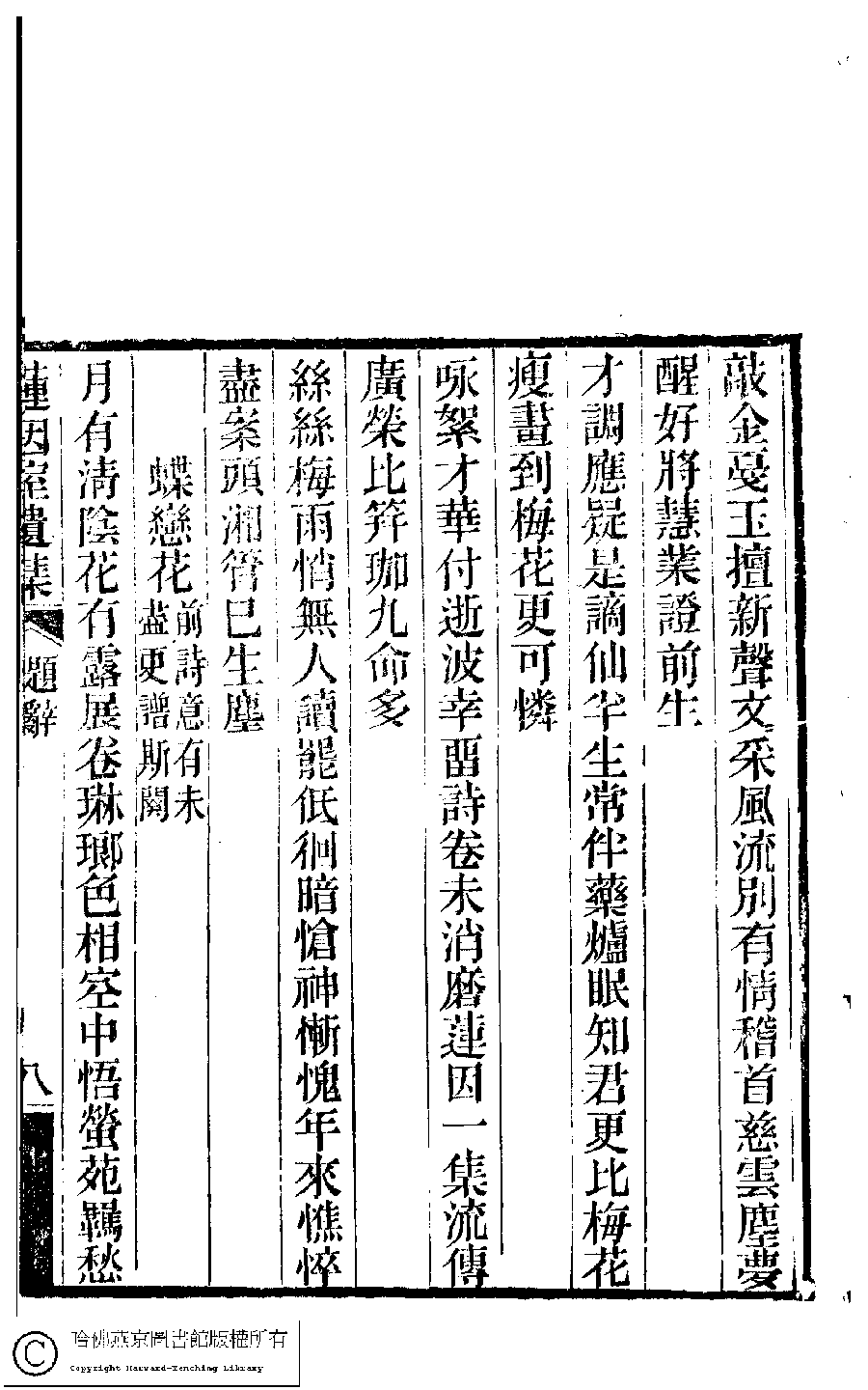 | (PRINT FRIENDLY VERSION) 蓮因室詩集﹕二卷﹐詞集﹕一卷(清鄭蘭孫撰)。清光緒元年(1875)刻本 ![]() 頁碼 : 題辭.8a | 点 击 放 大 | 蓮因室詩集﹕二卷﹐詞集﹕一卷(清鄭蘭孫撰)。清光緒元年(1875)刻本![]() 頁碼 : 題辭.7b | 点 击 放 大 | 返回 |