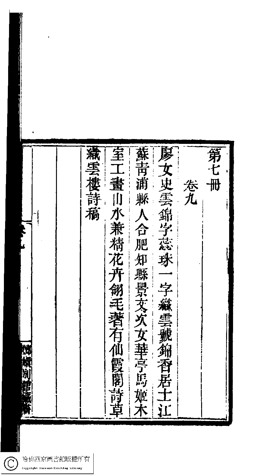 | 原書: 國朝閨閣詩鈔﹕一百種一百卷(清蔡殿齊輯): 織雲樓詩稿﹕一卷 |