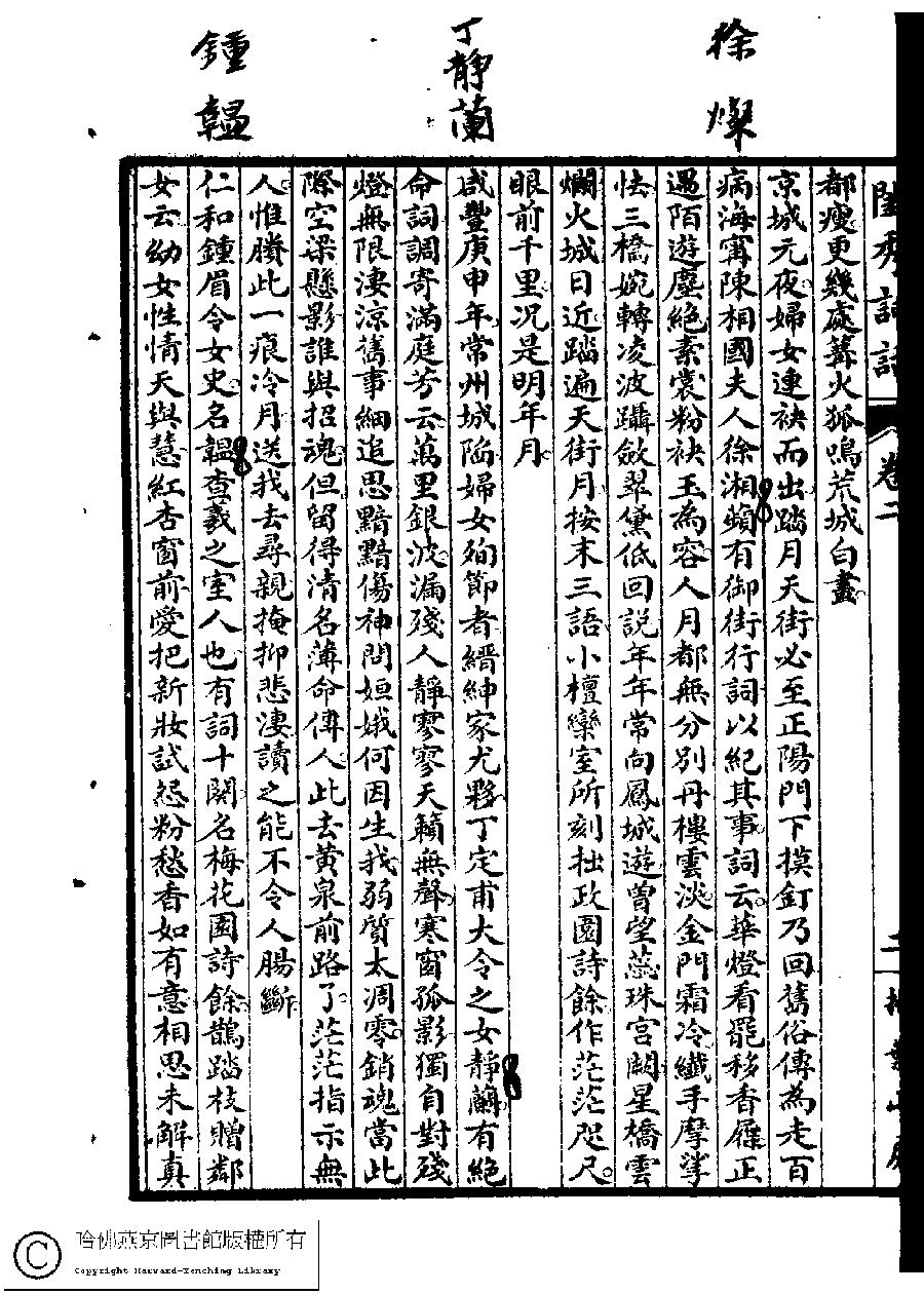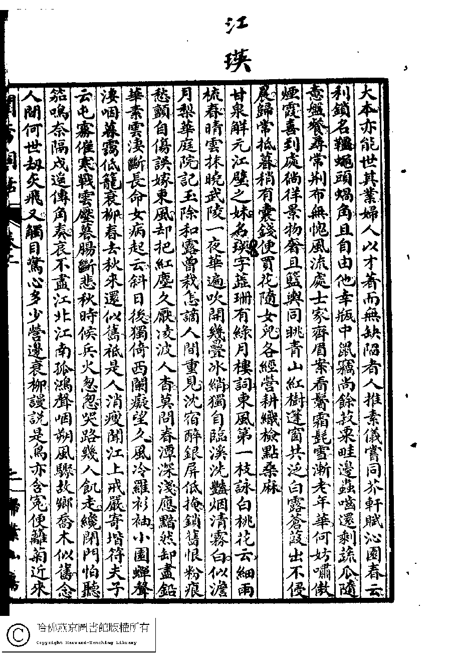 | (PRINT FRIENDLY VERSION) 閨秀詞話﹕四卷(雷瑨、雷瑊輯)。民國五年(1916)掃葉山房石印本 ![]() 頁碼 : 2.2b | 点 击 放 大 | 閨秀詞話﹕四卷(雷瑨、雷瑊輯)。民國五年(1916)掃葉山房石印本![]() 頁碼 : 2.2a | 点 击 放 大 | 返回 |