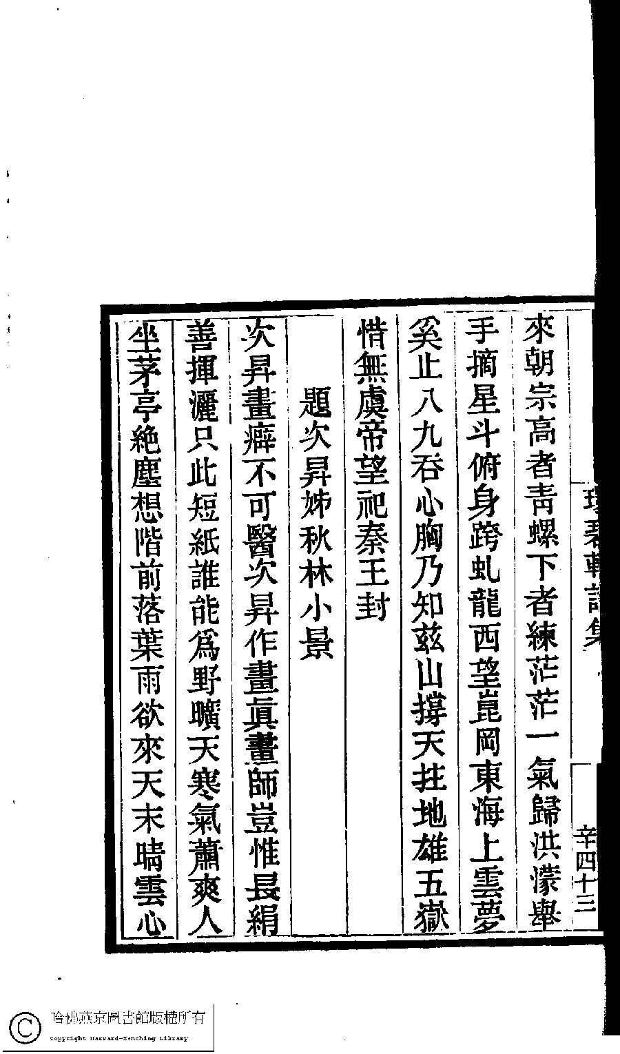 | 原書: 國朝閨閣詩鈔﹕一百種一百卷(清蔡殿齊輯): 環碧軒詩集﹕一卷 |
