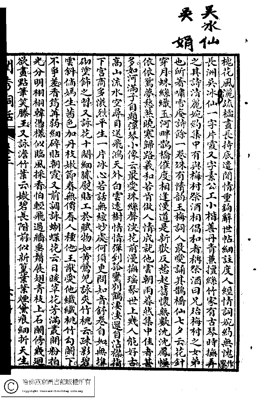 | (PRINT FRIENDLY VERSION) 閨秀詞話﹕四卷(雷瑨、雷瑊輯)。民國五年(1916)掃葉山房石印本 ![]() 頁碼 : 3.6a | 点 击 放 大 | 閨秀詞話﹕四卷(雷瑨、雷瑊輯)。民國五年(1916)掃葉山房石印本![]() 頁碼 : 3.5b | 点 击 放 大 | 返回 |