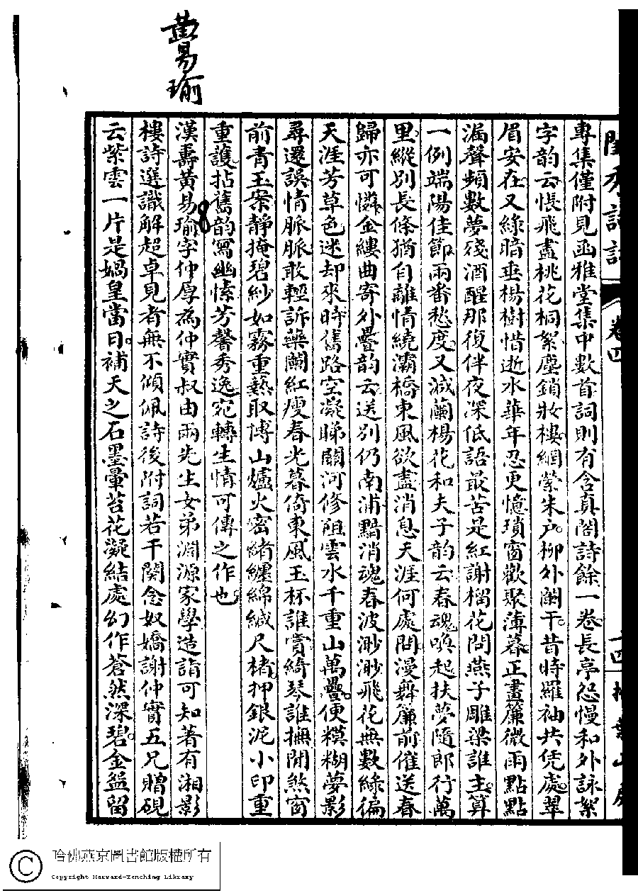 | (PRINT FRIENDLY VERSION) 閨秀詞話﹕四卷(雷瑨、雷瑊輯)。民國五年(1916)掃葉山房石印本 ![]() 頁碼 : 4.15a | 点 击 放 大 | 閨秀詞話﹕四卷(雷瑨、雷瑊輯)。民國五年(1916)掃葉山房石印本![]() 頁碼 : 4.14b | 点 击 放 大 | 返回 |