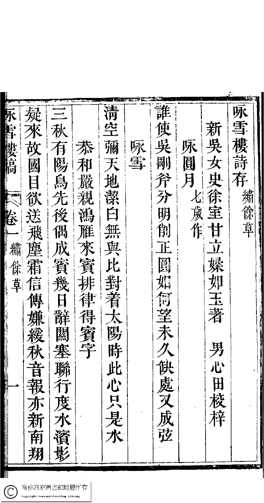 | 原書: 詠雪樓稿﹕五卷,卷首一卷,附一卷(清甘立媃撰) |