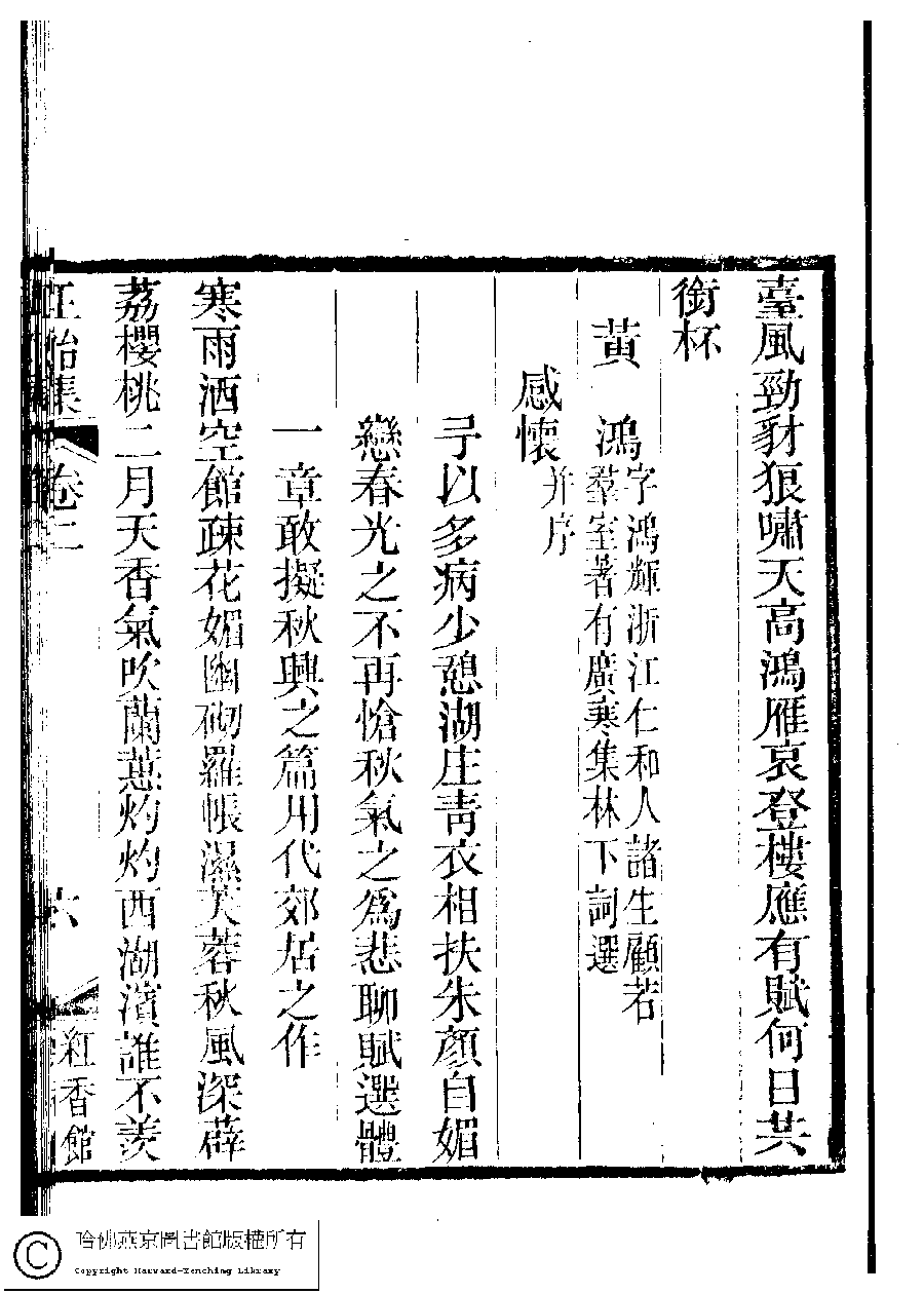 | 原書: 國朝閨秀正始集﹕二十卷﹐附錄﹕一卷﹐補遺﹕一卷﹐又附題詞﹕一卷(清惲珠輯) |