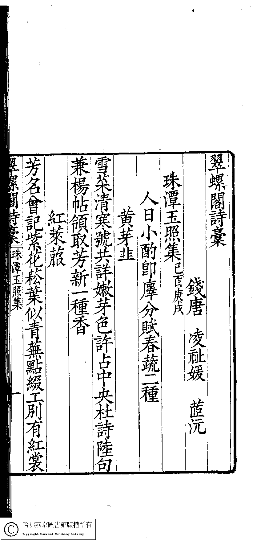 | 原書: 翠螺閣詩詞稾﹕五卷﹐附舞鏡集﹕一卷(清凌祉媛撰) |