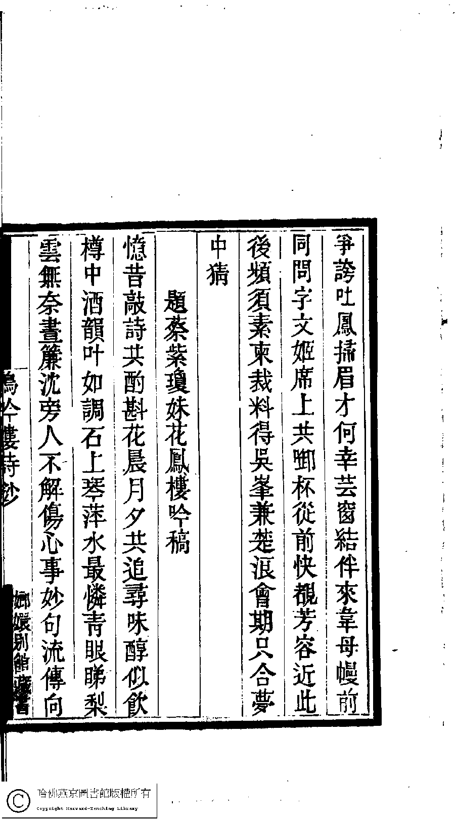 | 原書: 國朝閨閣詩鈔﹕一百種一百卷(清蔡殿齊輯): 鵠吟樓詩鈔﹕一卷 |