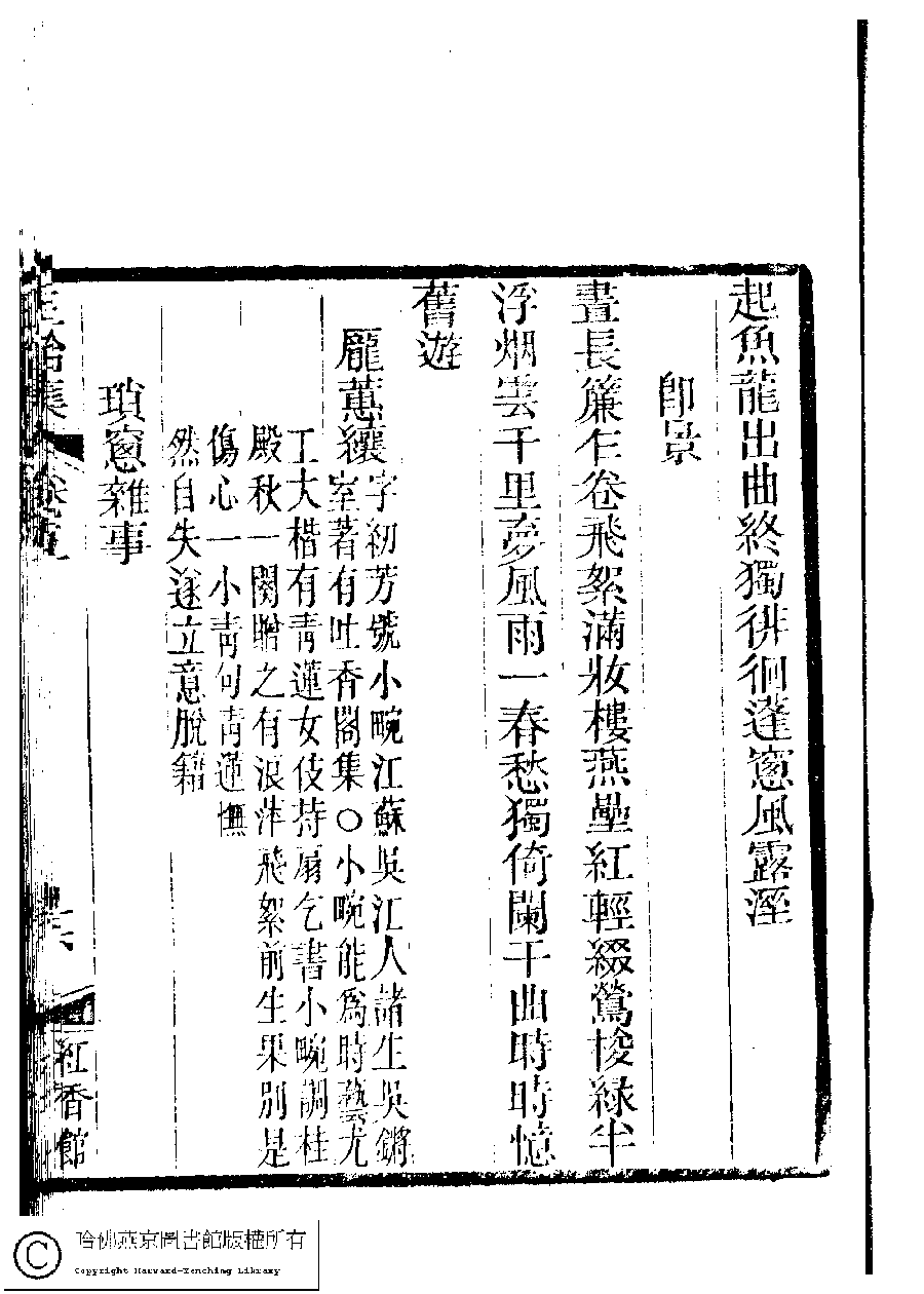 | 原書: 國朝閨秀正始集﹕二十卷﹐附錄﹕一卷﹐補遺﹕一卷﹐又附題詞﹕一卷(清惲珠輯) |