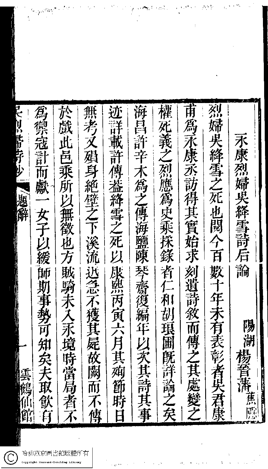 | 原書: 徐烈婦詩鈔﹕二卷﹐附吳絳雪年譜﹕一卷(清吳宗愛撰) |