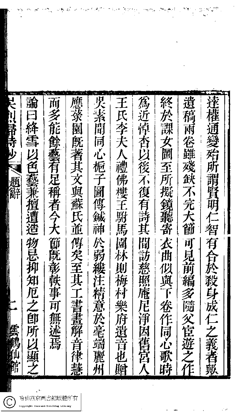 | (PRINT FRIENDLY VERSION) 徐烈婦詩鈔﹕二卷﹐附吳絳雪年譜﹕一卷(清吳宗愛撰)。清光緒元年(1875)雲鶴仙館刻本。 ![]() 頁碼 : 題詞.2b | 点 击 放 大 | 徐烈婦詩鈔﹕二卷﹐附吳絳雪年譜﹕一卷(清吳宗愛撰)。清光緒元年(1875)雲鶴仙館刻本。![]() 頁碼 : 題詞.2a | 点 击 放 大 | 徐烈婦詩鈔﹕二卷﹐附吳絳雪年譜﹕一卷(清吳宗愛撰)。清光緒元年(1875)雲鶴仙館刻本。![]() 頁碼 : 題詞.1b | 点 击 放 大 | 徐烈婦詩鈔﹕二卷﹐附吳絳雪年譜﹕一卷(清吳宗愛撰)。清光緒元年(1875)雲鶴仙館刻本。![]() 頁碼 : 題詞.1a | 点 击 放 大 | 返回 |