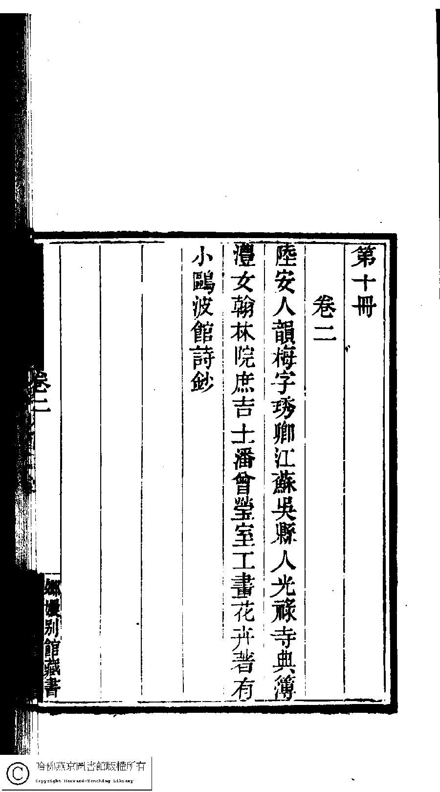 | 原書: 國朝閨閣詩鈔﹕一百種一百卷(清蔡殿齊輯): 小鷗波館詩鈔﹕一卷 |