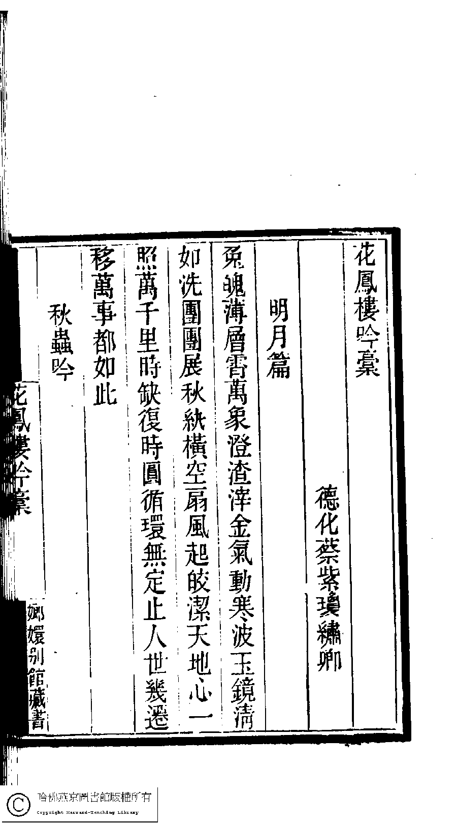 | 原書: 國朝閨閣詩鈔﹕一百種一百卷(清蔡殿齊輯): 花鳳樓吟稿﹕一卷 |