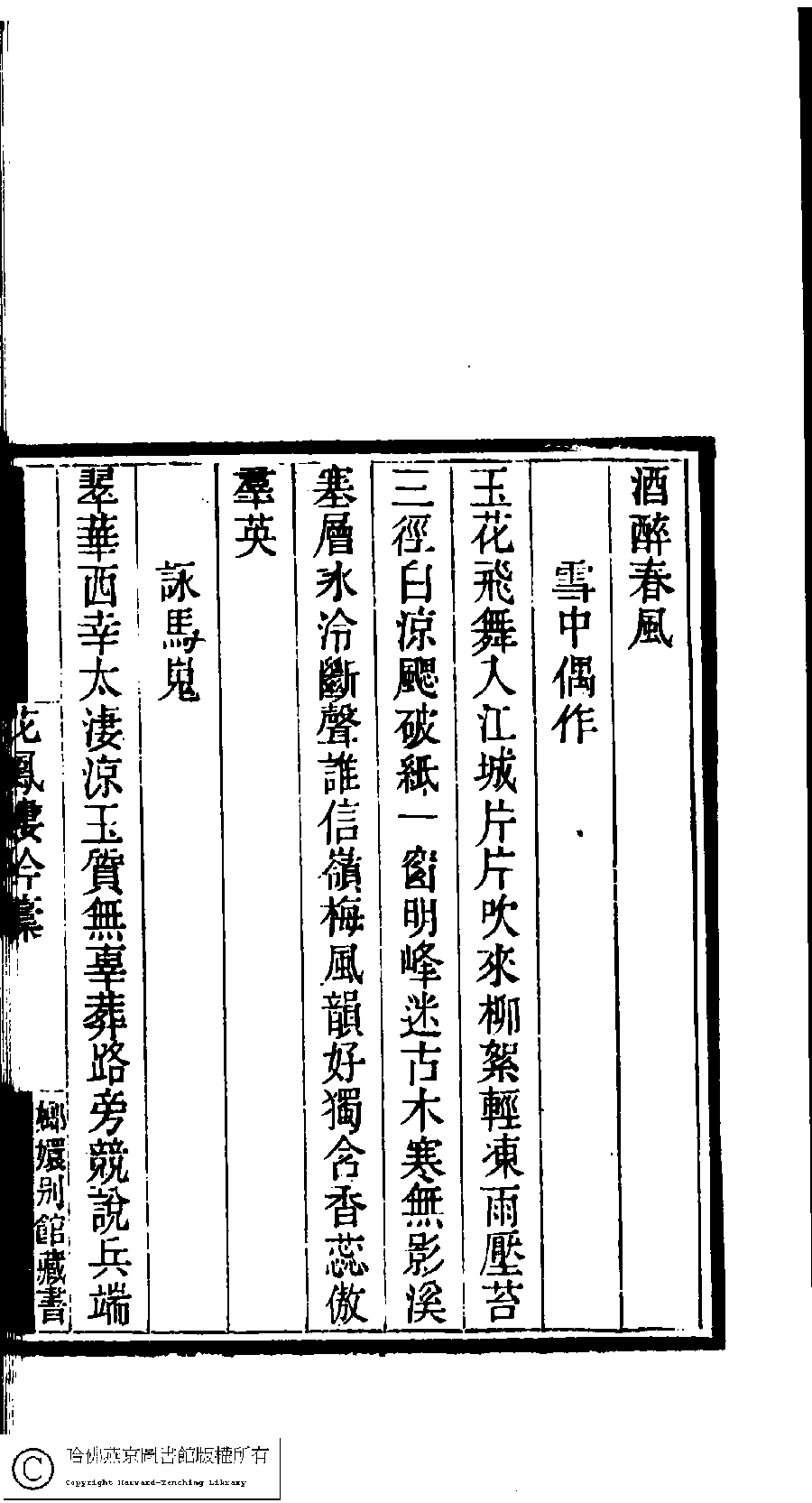 | 原書: 國朝閨閣詩鈔﹕一百種一百卷(清蔡殿齊輯): 花鳳樓吟稿﹕一卷 |