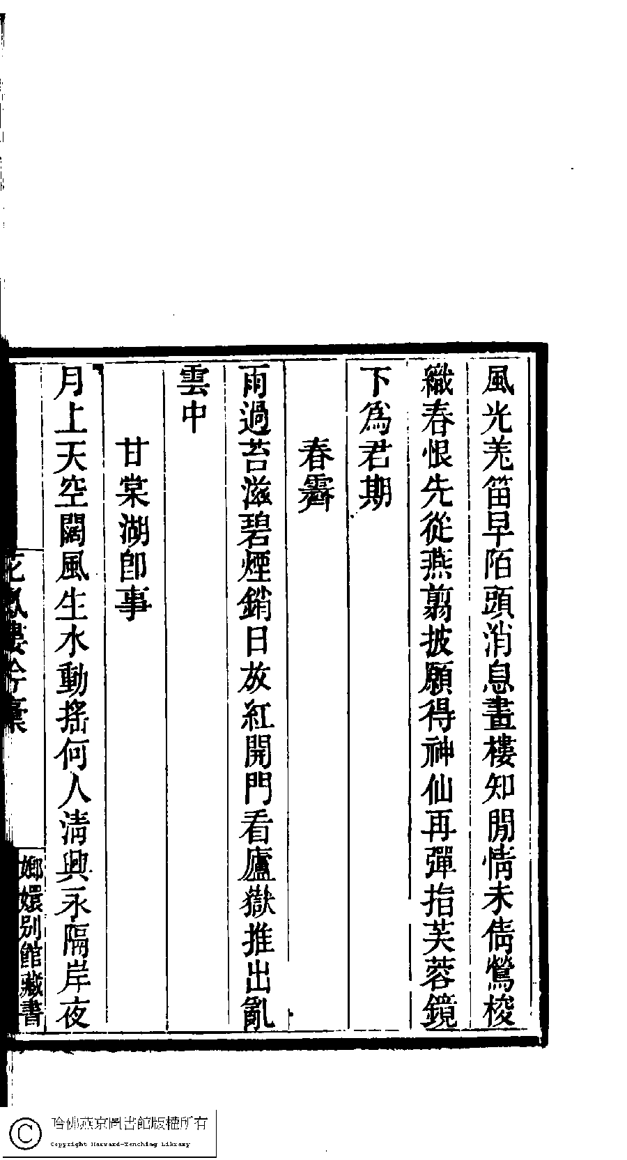 | 原書: 國朝閨閣詩鈔﹕一百種一百卷(清蔡殿齊輯): 花鳳樓吟稿﹕一卷 |