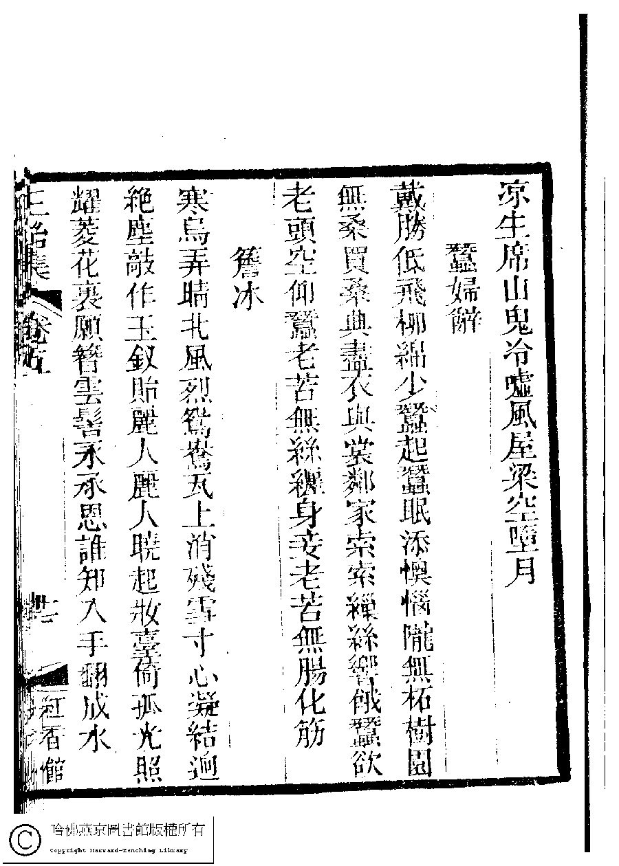 | 原書: 國朝閨秀正始集﹕二十卷﹐附錄﹕一卷﹐補遺﹕一卷﹐又附題詞﹕一卷(清惲珠輯) |