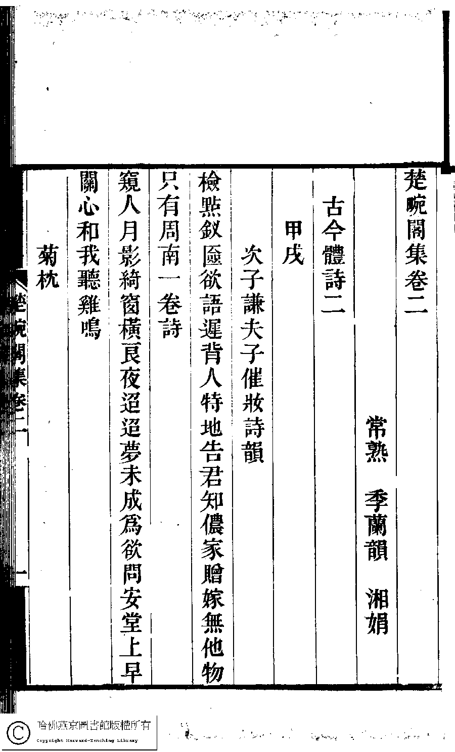 | 原書: 楚畹閣集﹕十二卷(清季蘭韻撰) |