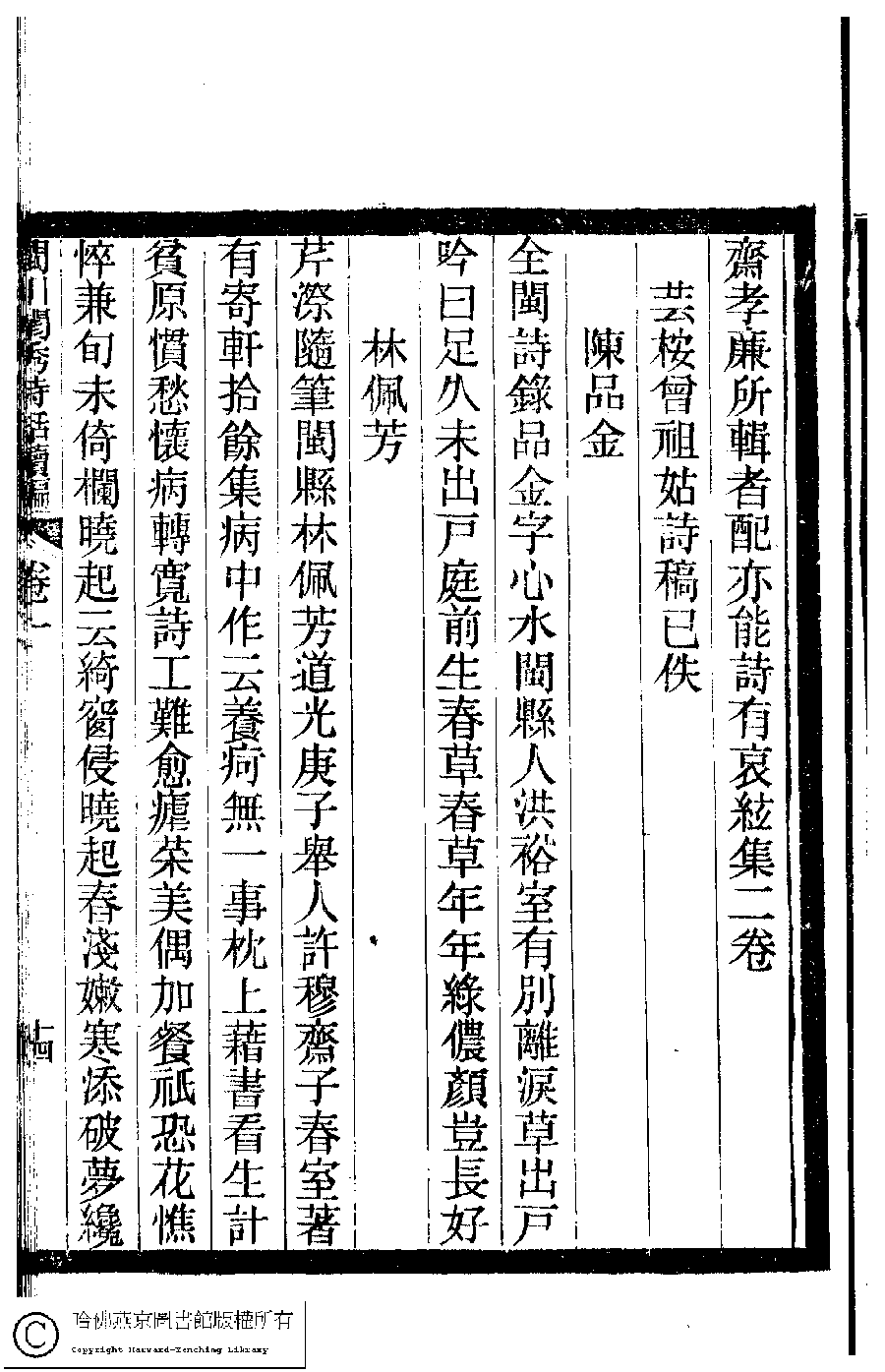 | 原書: 閩川閨秀詩話續編﹕四卷(清丁芸輯) |