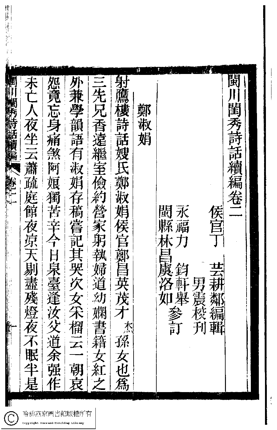 | 原書: 閩川閨秀詩話續編﹕四卷(清丁芸輯) |