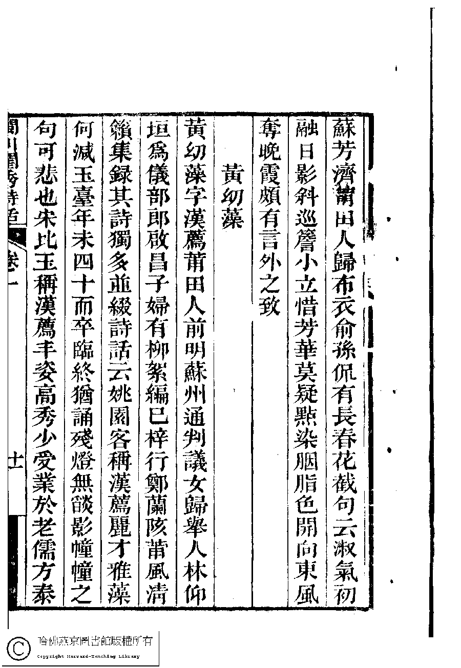 | (PRINT FRIENDLY VERSION) 閩川閨秀詩話﹕四卷(清梁章鉅撰)。光緖元年(1875)清刻本 ![]() 頁碼 : 1.11b | 点 击 放 大 | 閩川閨秀詩話﹕四卷(清梁章鉅撰)。光緖元年(1875)清刻本![]() 頁碼 : 1.11a | 点 击 放 大 | 返回 |