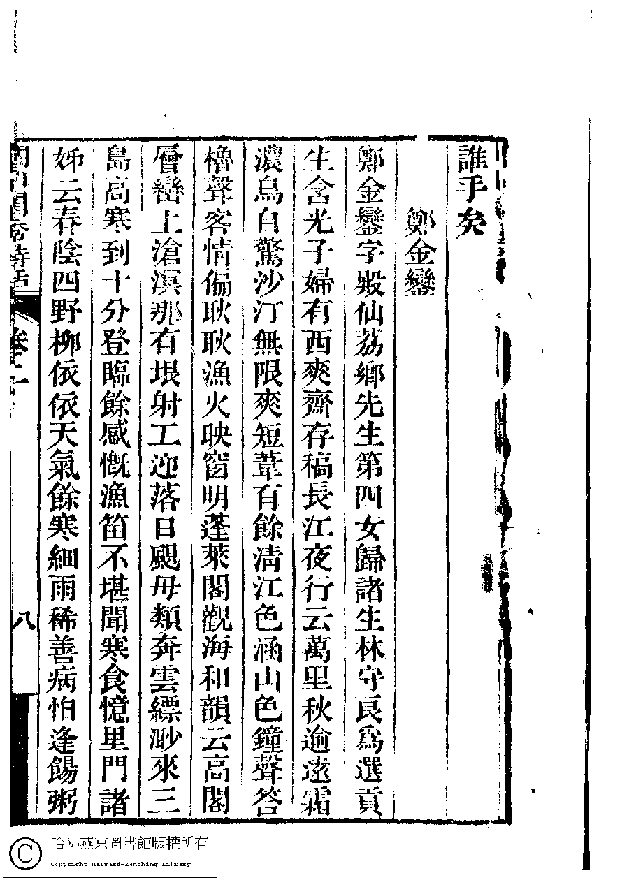 | (PRINT FRIENDLY VERSION) 閩川閨秀詩話﹕四卷(清梁章鉅撰)。光緖元年(1875)清刻本 ![]() 頁碼 : 2.8a | 点 击 放 大 | 閩川閨秀詩話﹕四卷(清梁章鉅撰)。光緖元年(1875)清刻本![]() 頁碼 : 2.7b | 点 击 放 大 | 返回 |