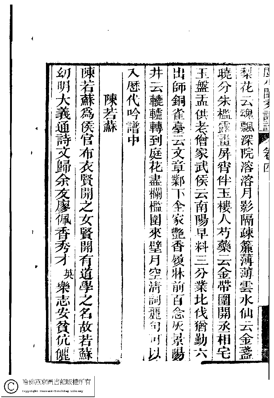 | (PRINT FRIENDLY VERSION) 閩川閨秀詩話﹕四卷(清梁章鉅撰) ![]() 頁碼 : 4.6a | 点 击 放 大 | 閩川閨秀詩話﹕四卷(清梁章鉅撰)![]() 頁碼 : 4.5b | 点 击 放 大 | 閩川閨秀詩話﹕四卷(清梁章鉅撰)![]() 頁碼 : 4.5a | 点 击 放 大 | 閩川閨秀詩話﹕四卷(清梁章鉅撰)![]() 頁碼 : 4.4b | 点 击 放 大 |