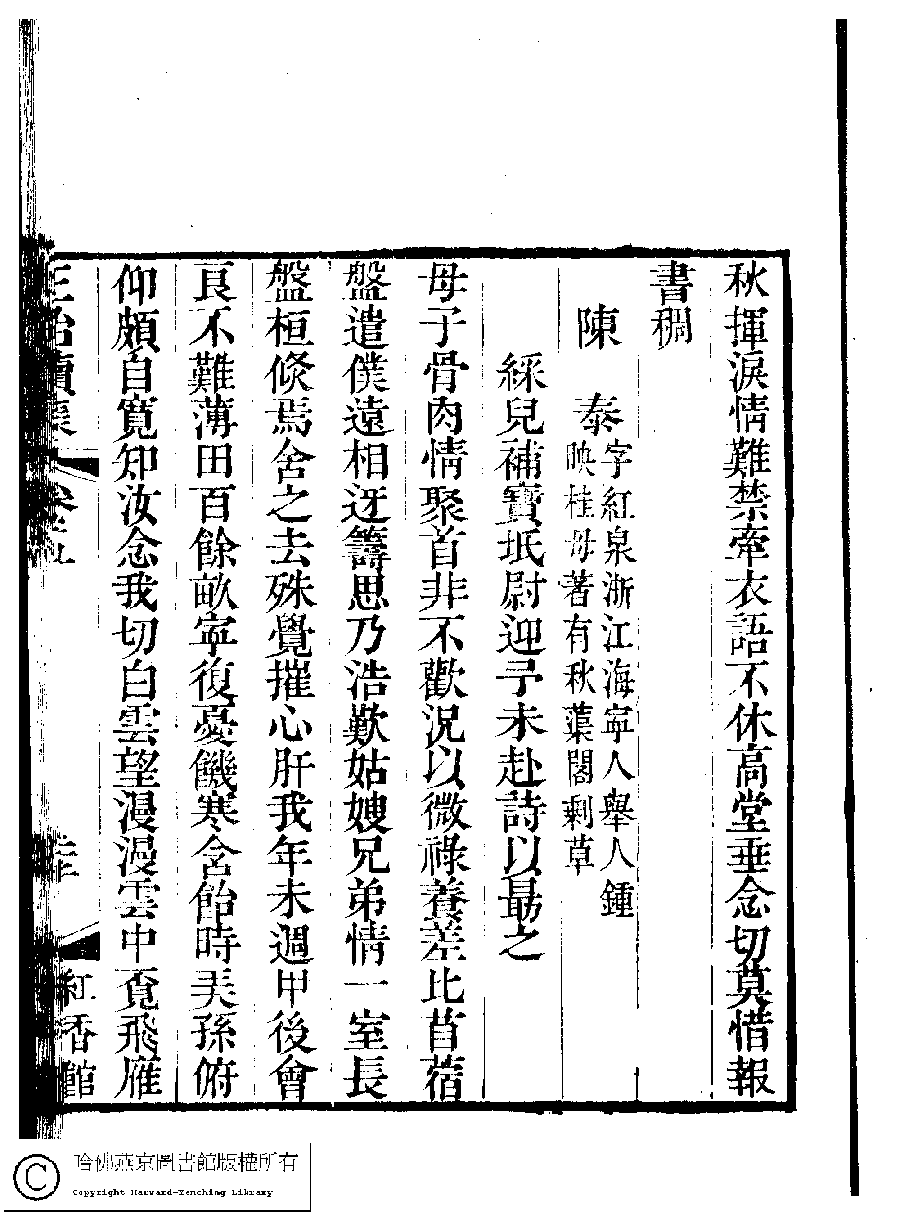 | 原書: 國朝閨秀正始續集﹕十卷﹐附錄﹕一卷﹐補遺﹕一卷﹐輓詞﹕一卷(清惲珠輯) |