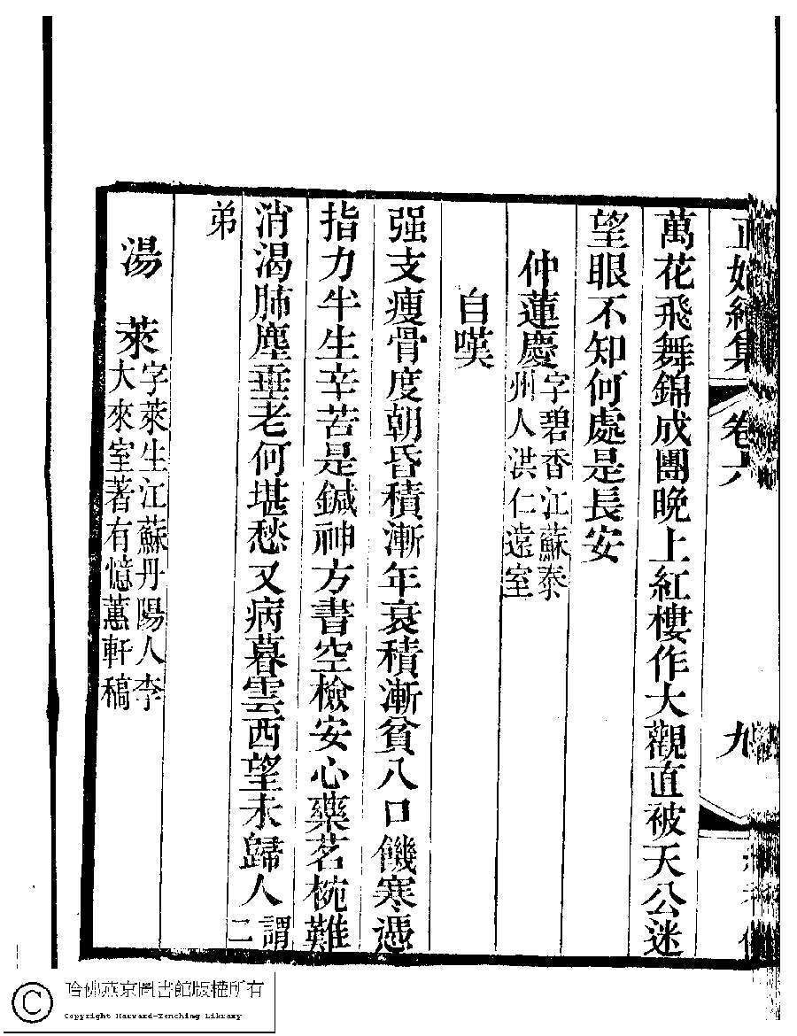 | 原書: 國朝閨秀正始續集﹕十卷﹐附錄﹕一卷﹐補遺﹕一卷﹐輓詞﹕一卷(清惲珠輯) |