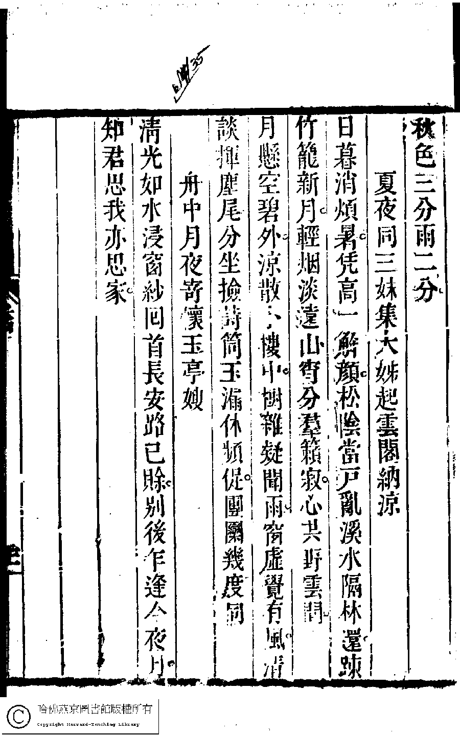 詩詞 [夏夜同三妹集大姊起雲閣納涼(二首)]